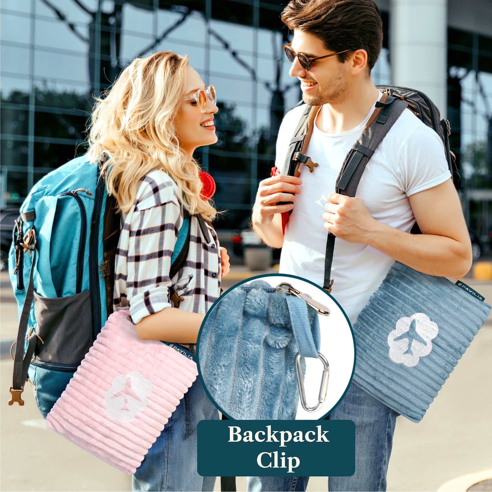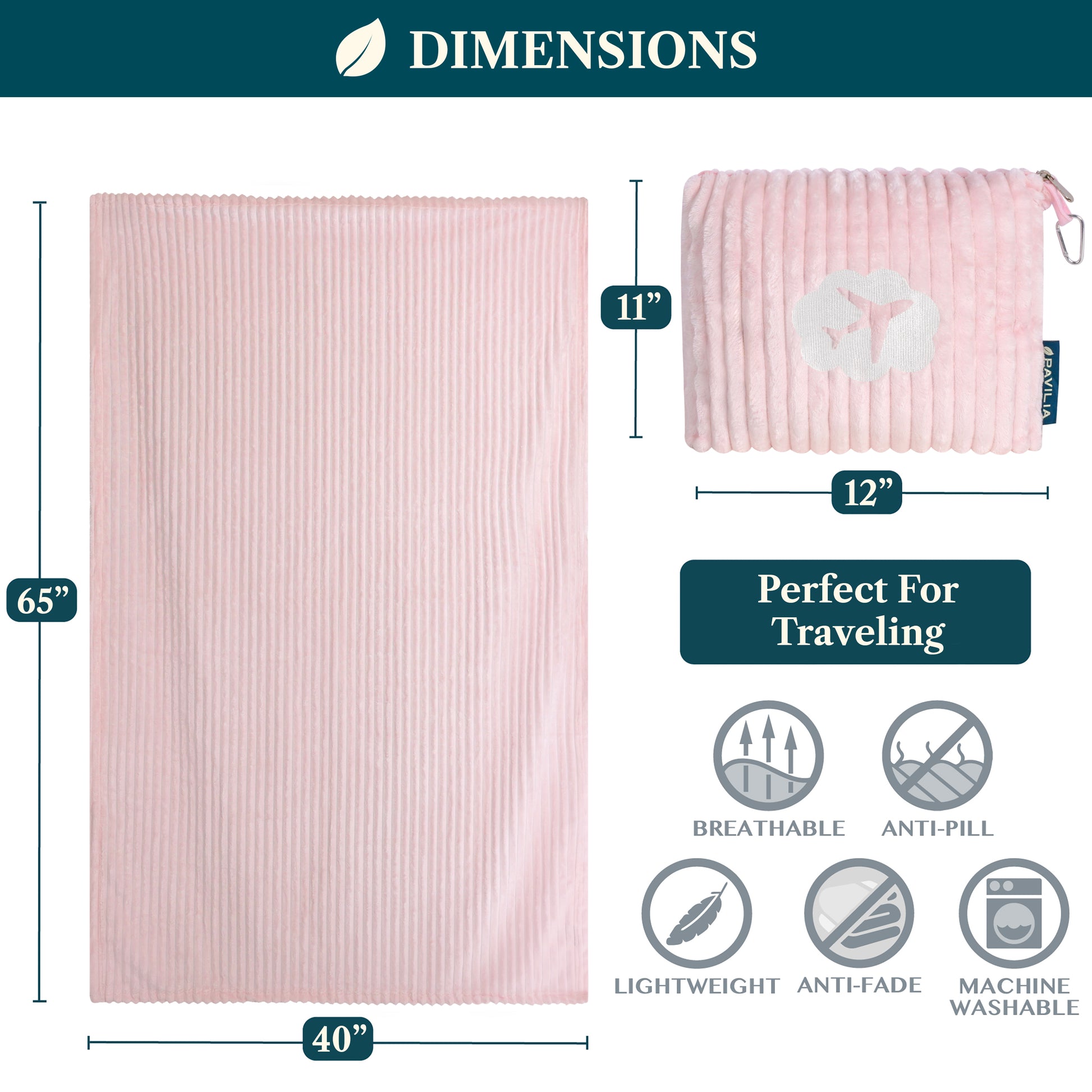 SOFT COZY TRAVEL BLANKET - This compact airplane throw blanket is packable and portable, designed for traveling, flying, camping and road trips. This plane blanket is plush and warm, keeping travelers warm through long flights and road trips. The travel blanket folds compactly into a pillowcase for easy storage. An ideal air travel accessories gift for women, men, adults, kids and toddlers. Perfect for sleeping on the plane, car, bus, train, airport, home, office and emergency use.