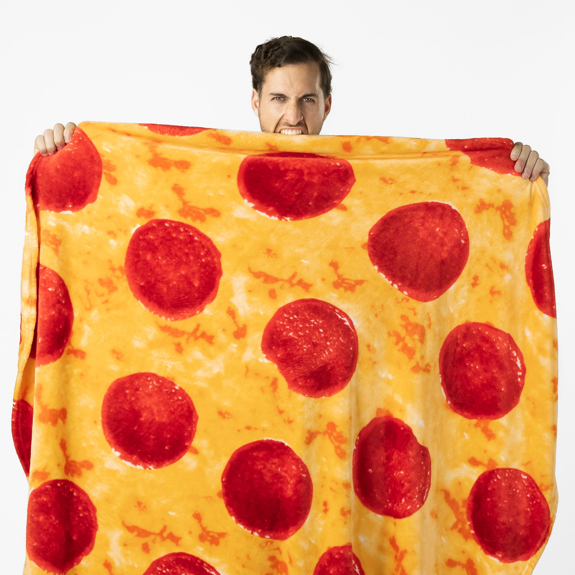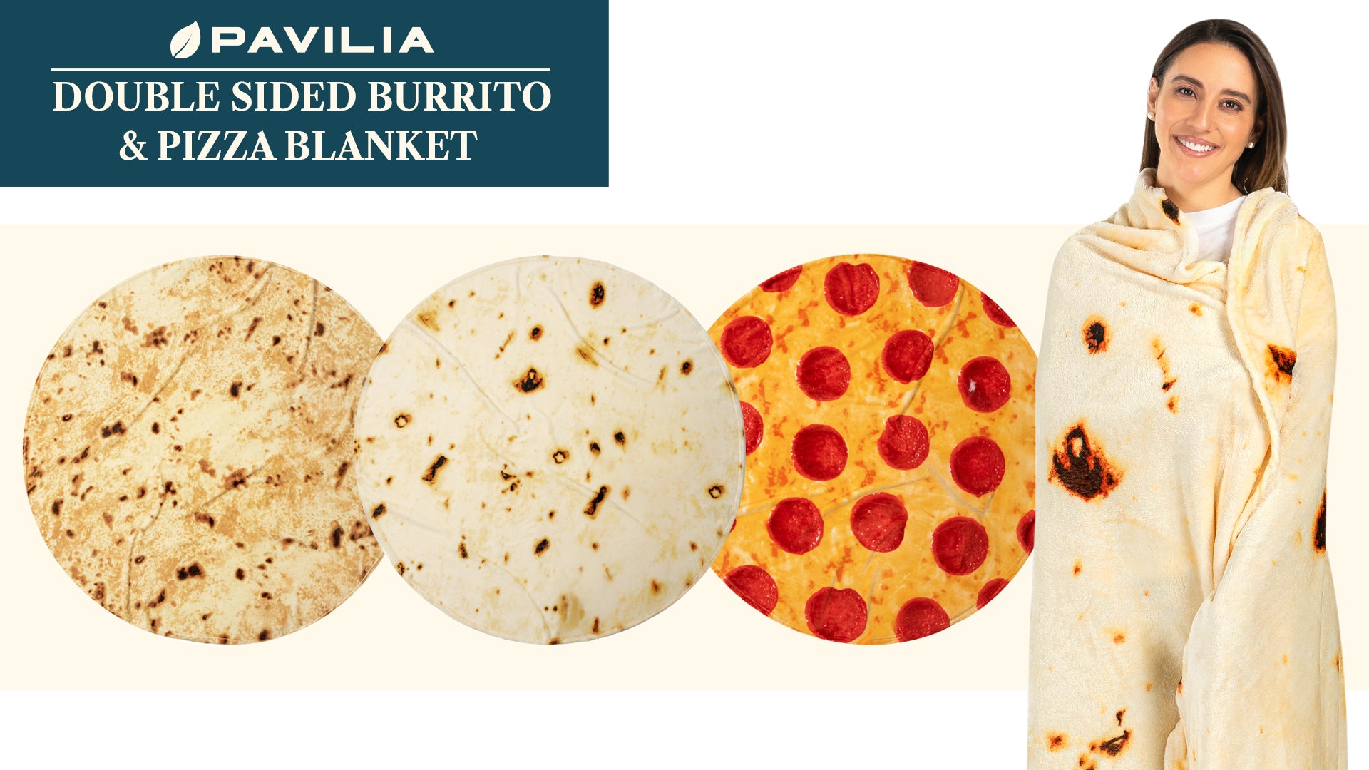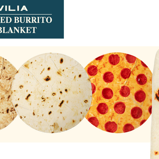 Available in pizza and burrito tortilla (White corn and Yellow corn). Funny double sided blanket to wrap yourself in like a big food wrap. Realistic, cute, and funny novelty blanket. A perfect fun gag gift for friends, birthdays, and Christmas.