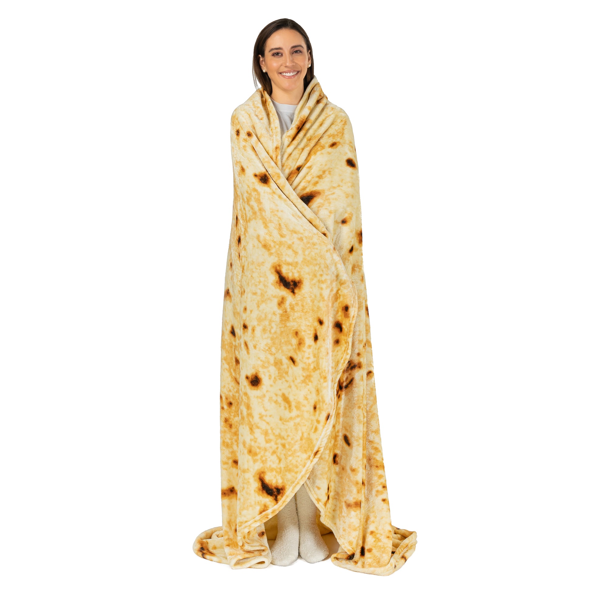 - REALISTIC FOOD BLANKET: Plush, double-sided and reversible tortilla pattern blanket. Looks like a real food wrap! Fun, warmth, and comfort in one blanket.