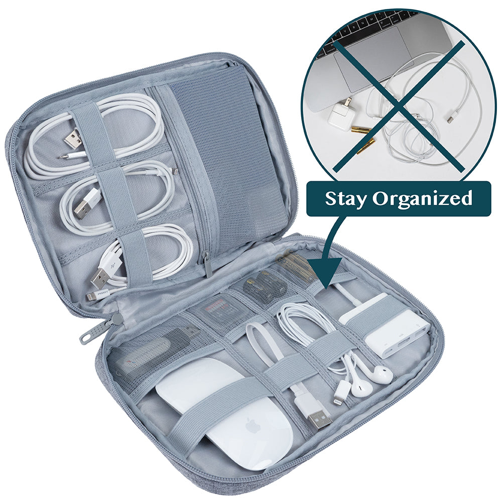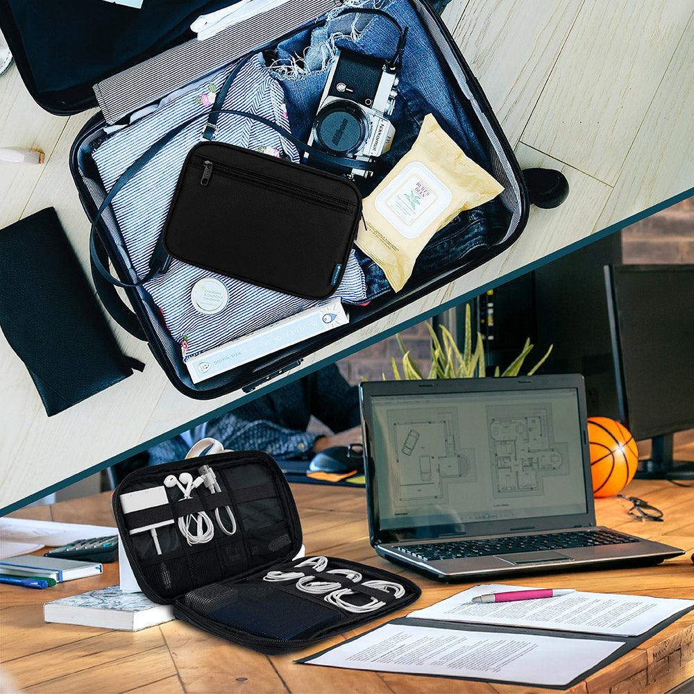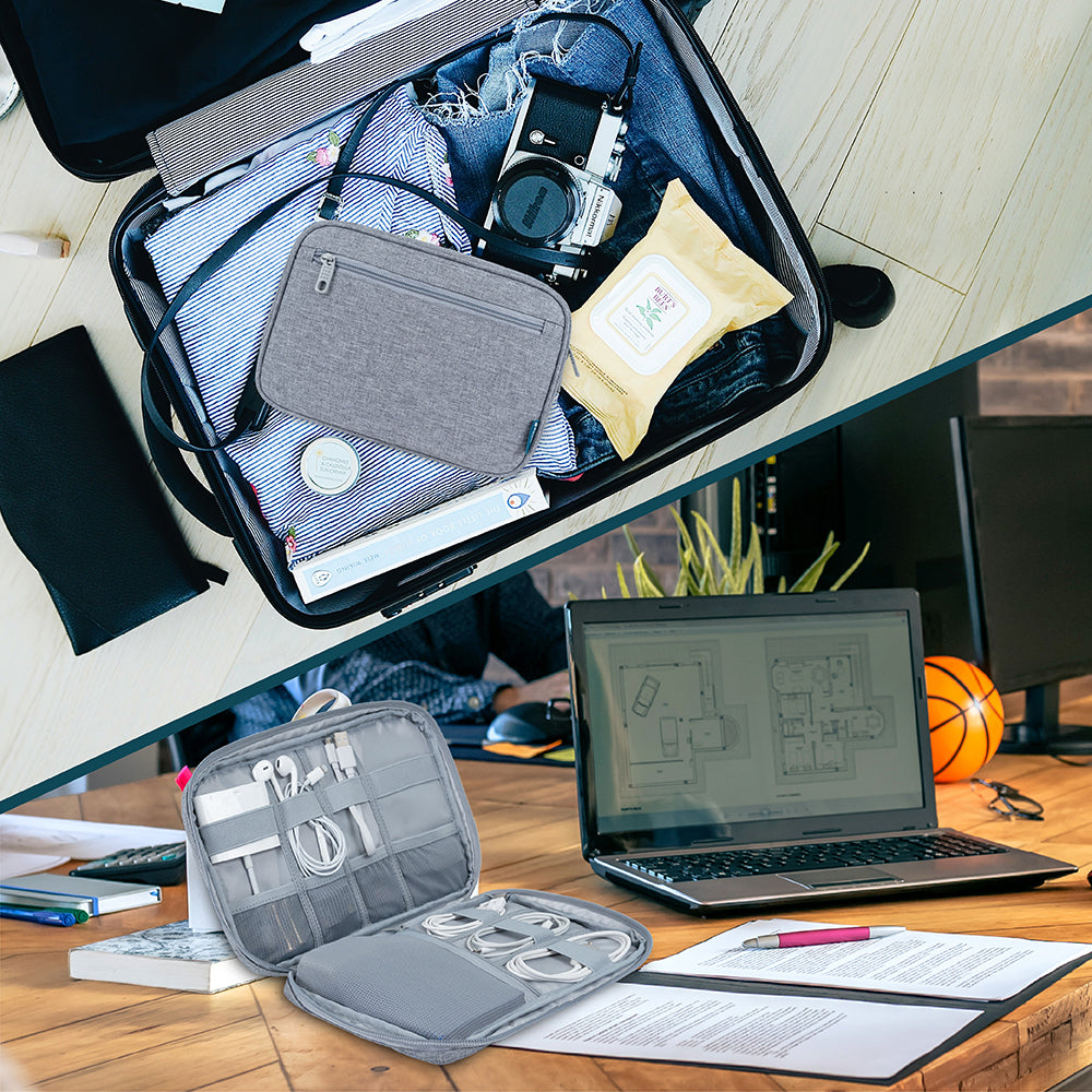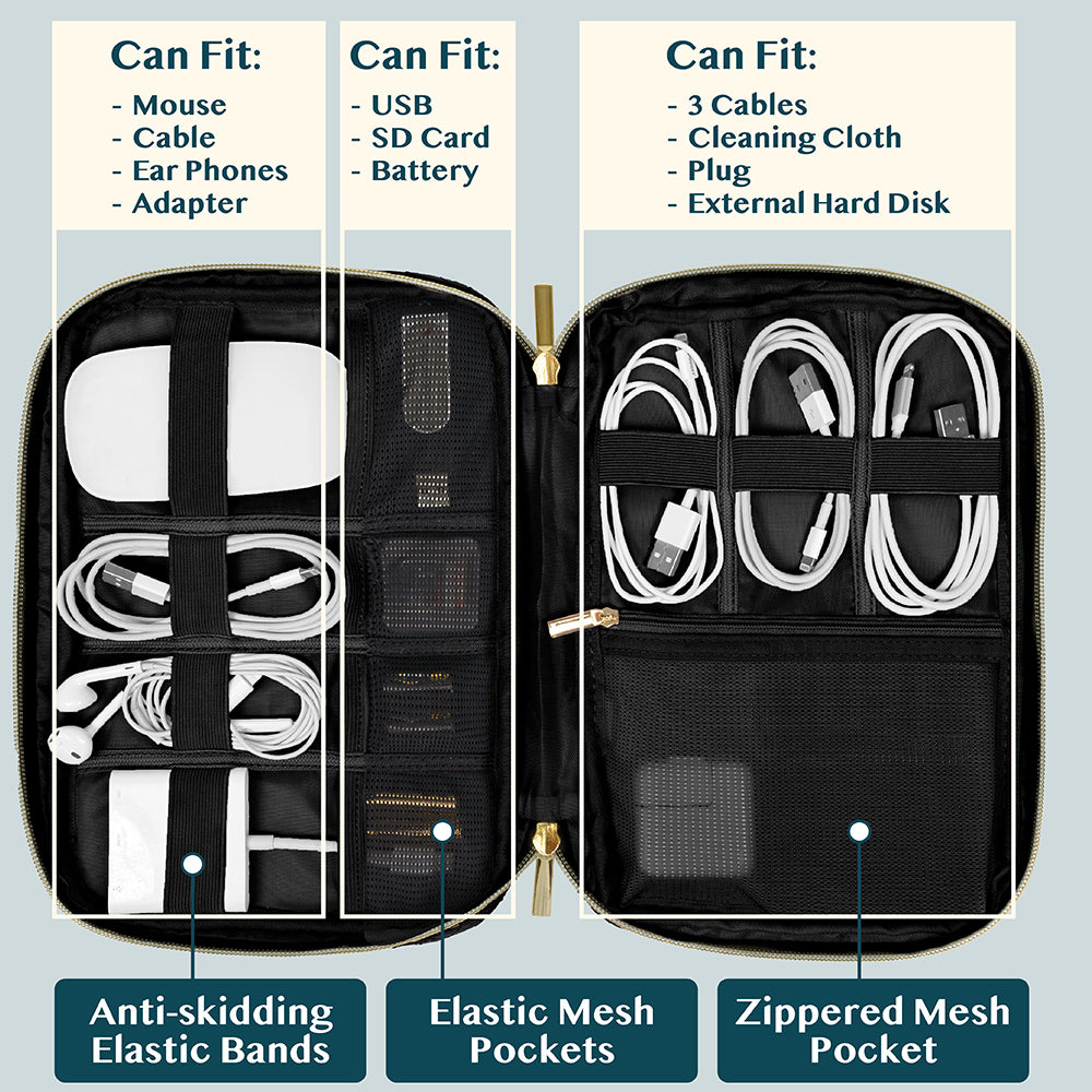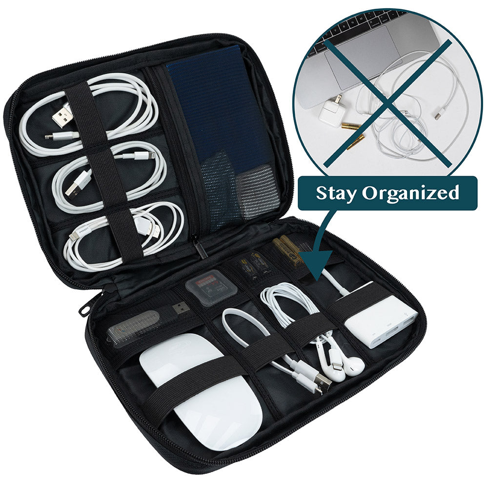 - LARGE CAPACITY: The electronics storage bag has enough space to take in your cords, cables, USB drive, cellphone, charger, mouse, flash drive, and other accessories.