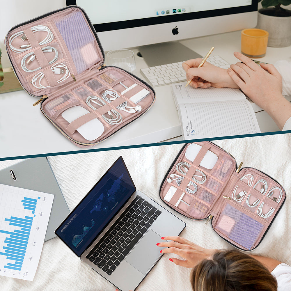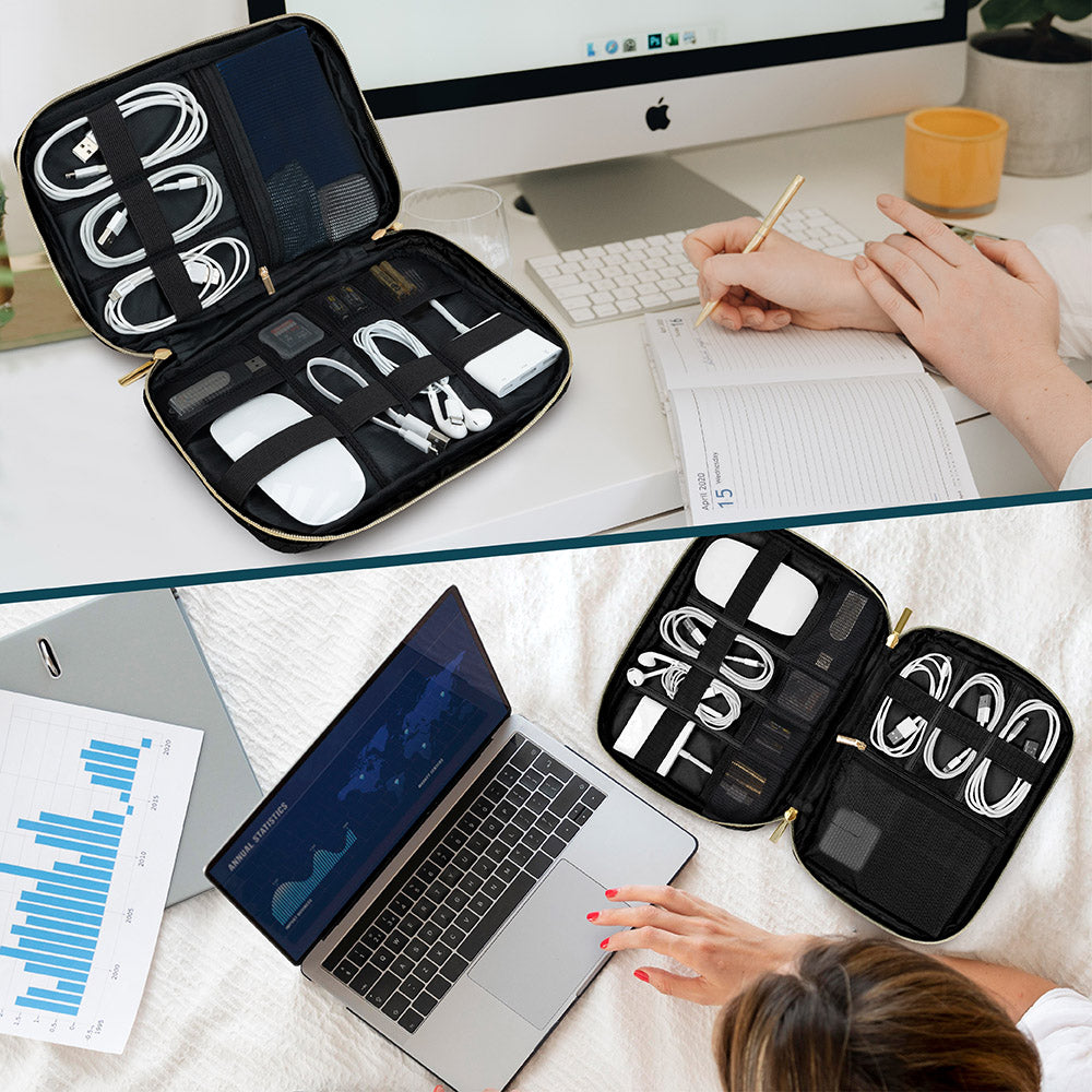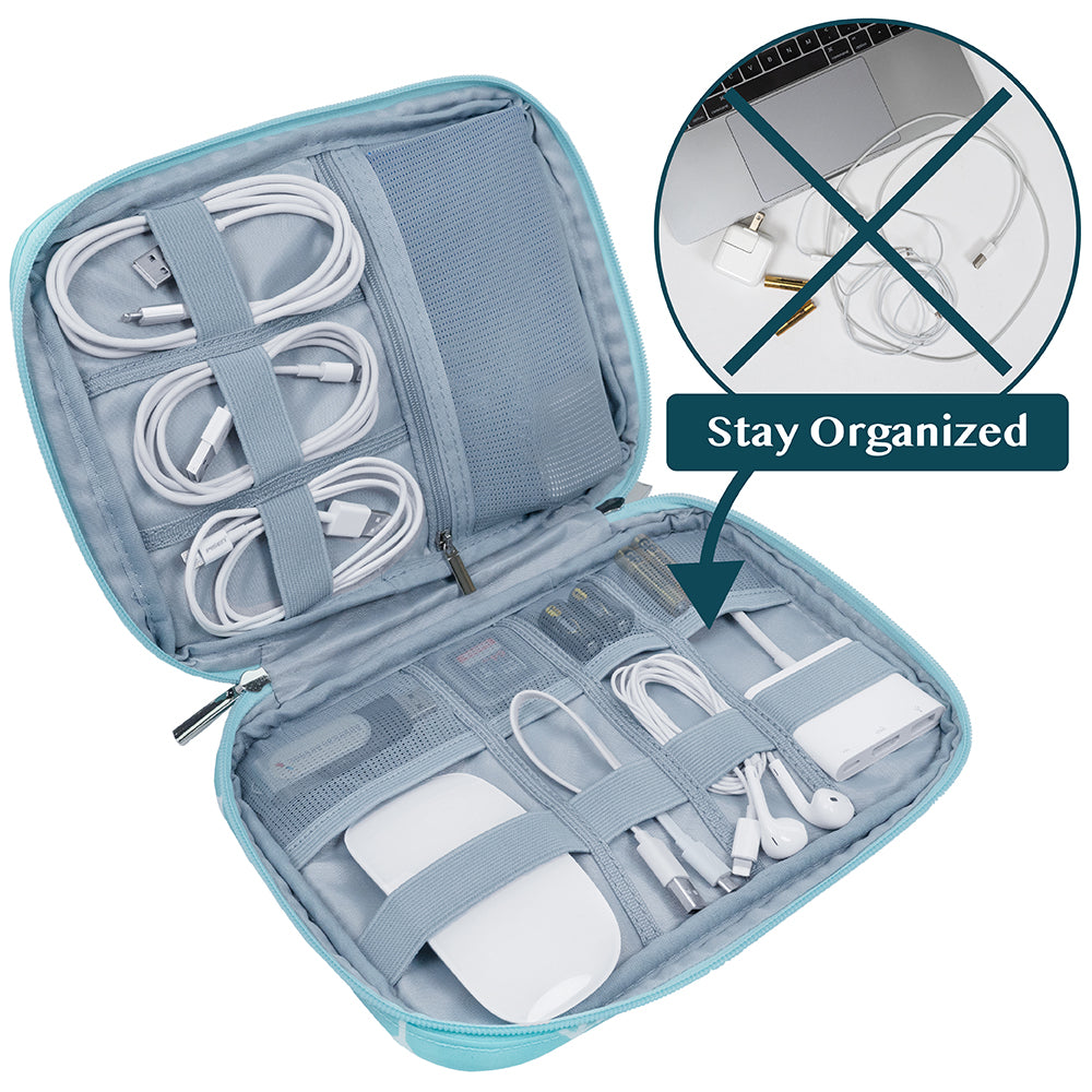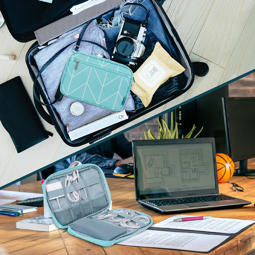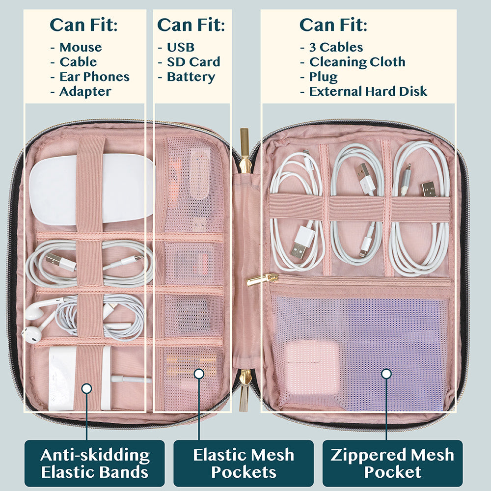 - LARGE CAPACITY: The electronics storage bag has enough space to take in your cords, cables, USB drive, cellphone, charger, mouse, flash drive, and other accessories.