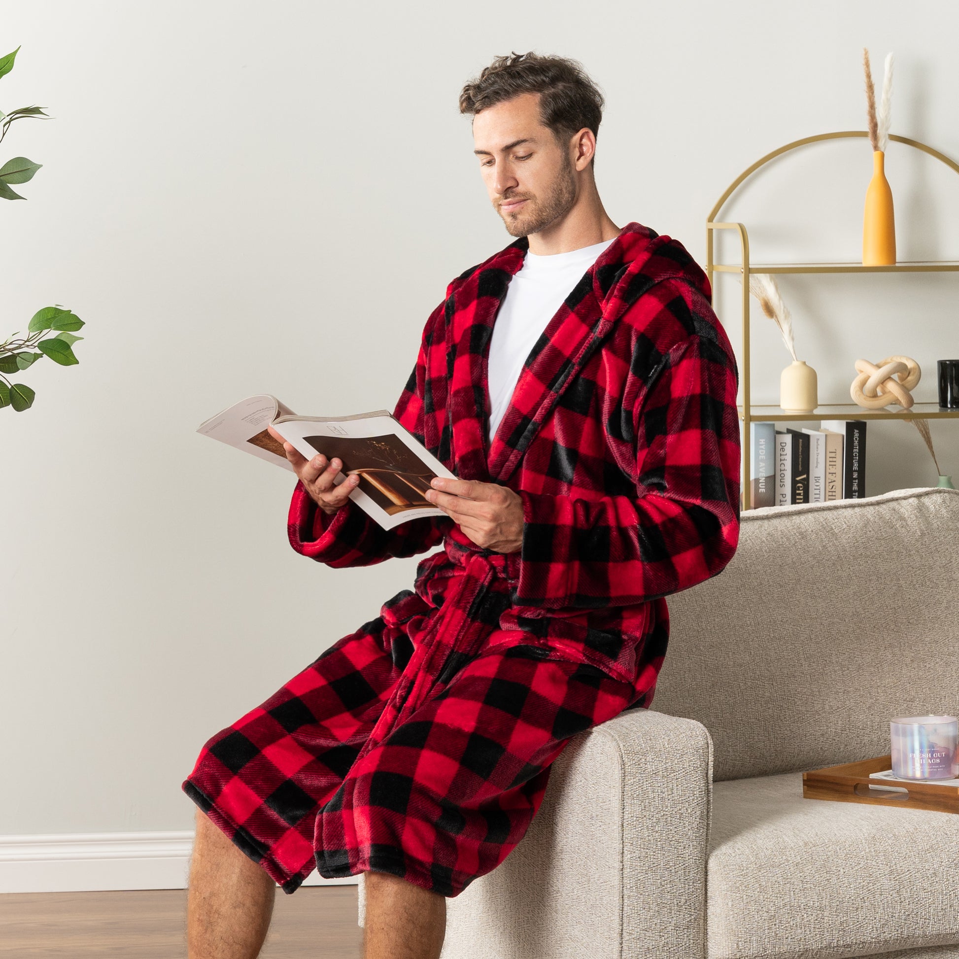 Men's Checkered Robe with Hood