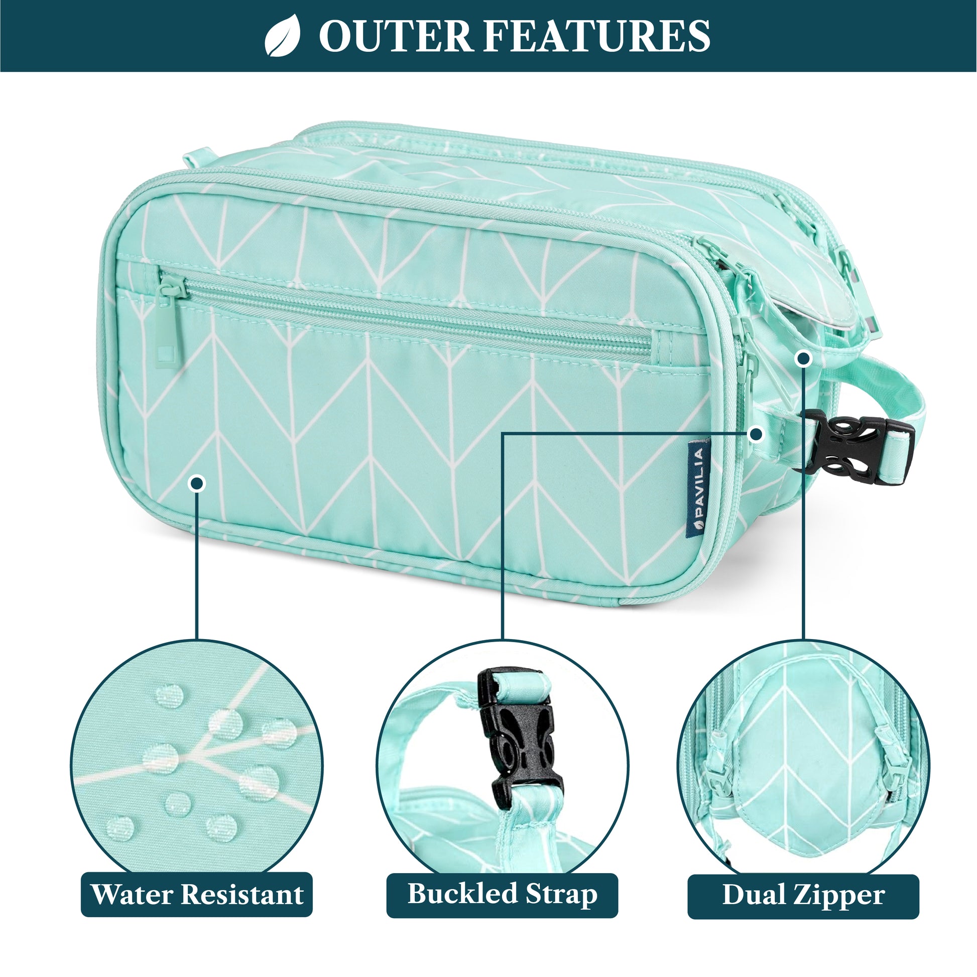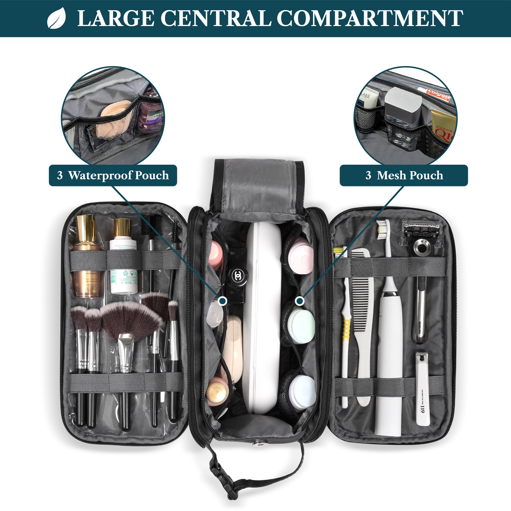 - LARGE OPENING TOILETRIES TRAVEL BAG: This toiletry bag organizer has double zipper design that allows for easy access to the large main compartment. With one simple pull on the handle, you can easily access key accessories such as shaving kit, tooth brush, and shampoo. This toiletry travel bag has the convenient design that helps you stay organized and makes this travel bag case an essentials during any traveling, flights, hotel stay, and weekend vacation.