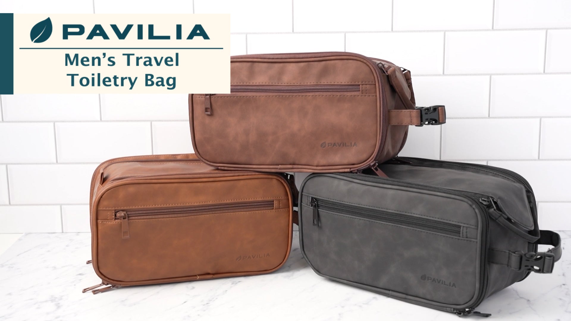 MENS TOILETRY BAG: This functional PU leather toiletry travel bag has a large compartment and side pockets with additional pockets to hold all your toiletry, shaving, and grooming accessories. Equipped with elastic bands and additional mesh pockets to keep your hygiene items secured while traveling, weekend trip at hotel, or at home, this cosmetic make up case will help you stay organized.