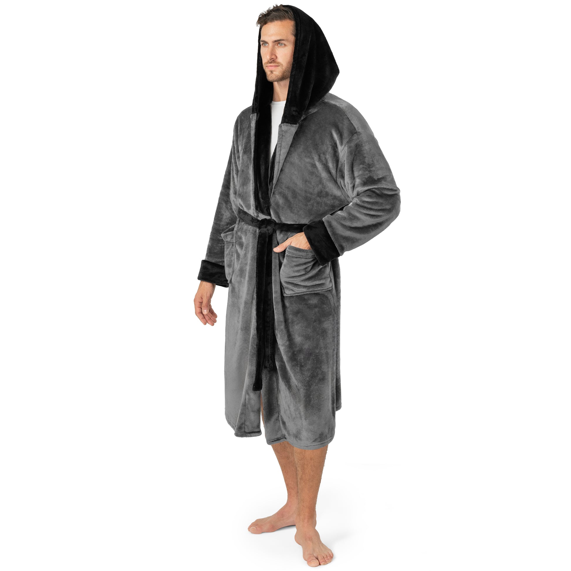 Men's Two-Tone Fleece Robe with Hood