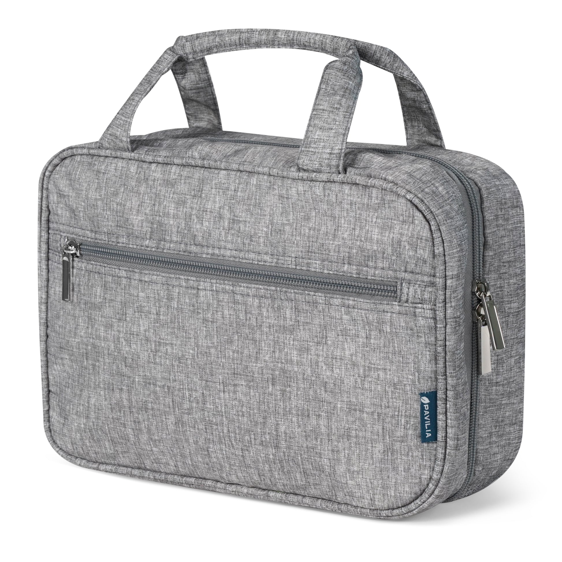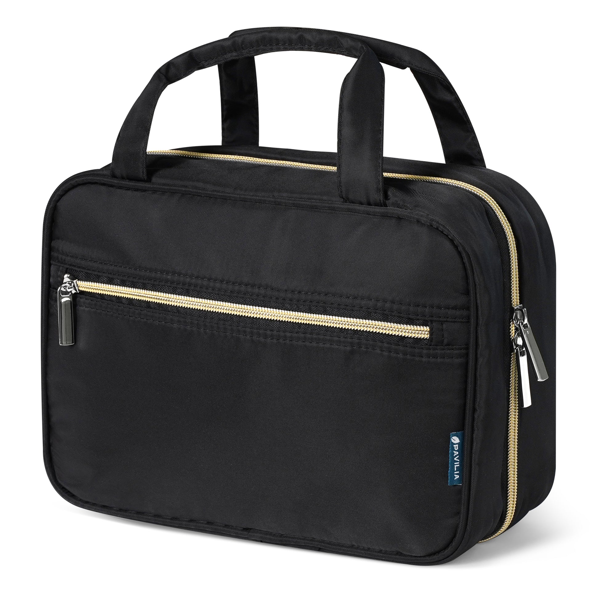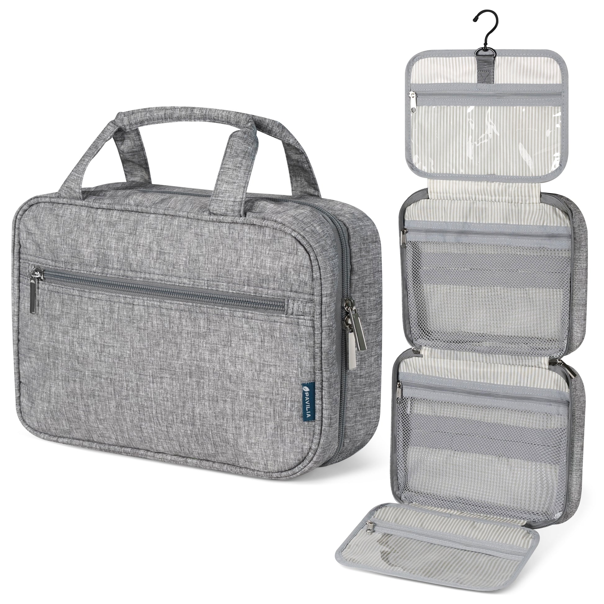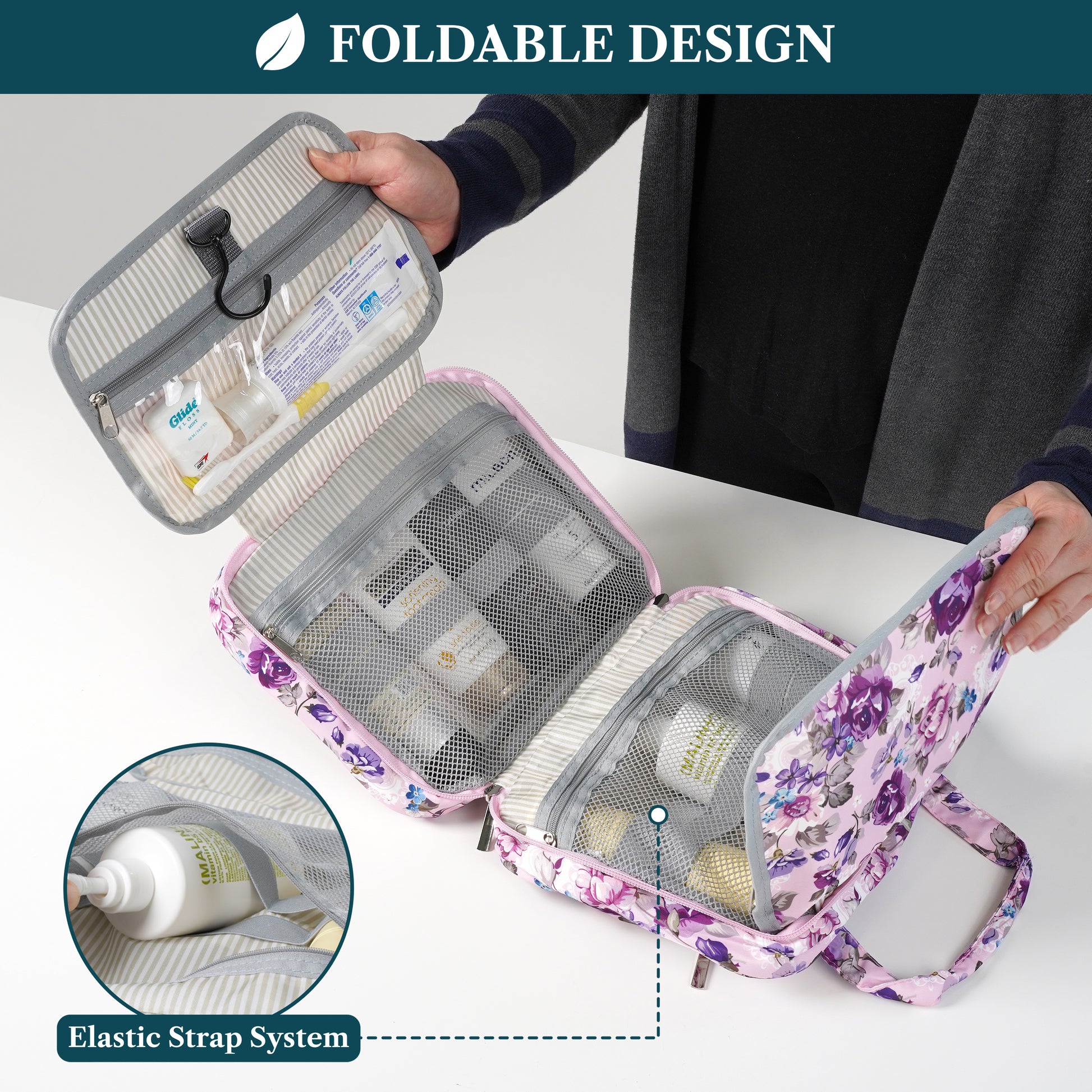 - FOR THE SMART TRAVELER This hanging toiletry bag is extremely functional; Equipped with a large central compartment and two side pockets, this bag has over 12 smaller pockets that let you organize all your toiletry from toothbrush, makeup brush, and other cosmetics/hygiene needs.