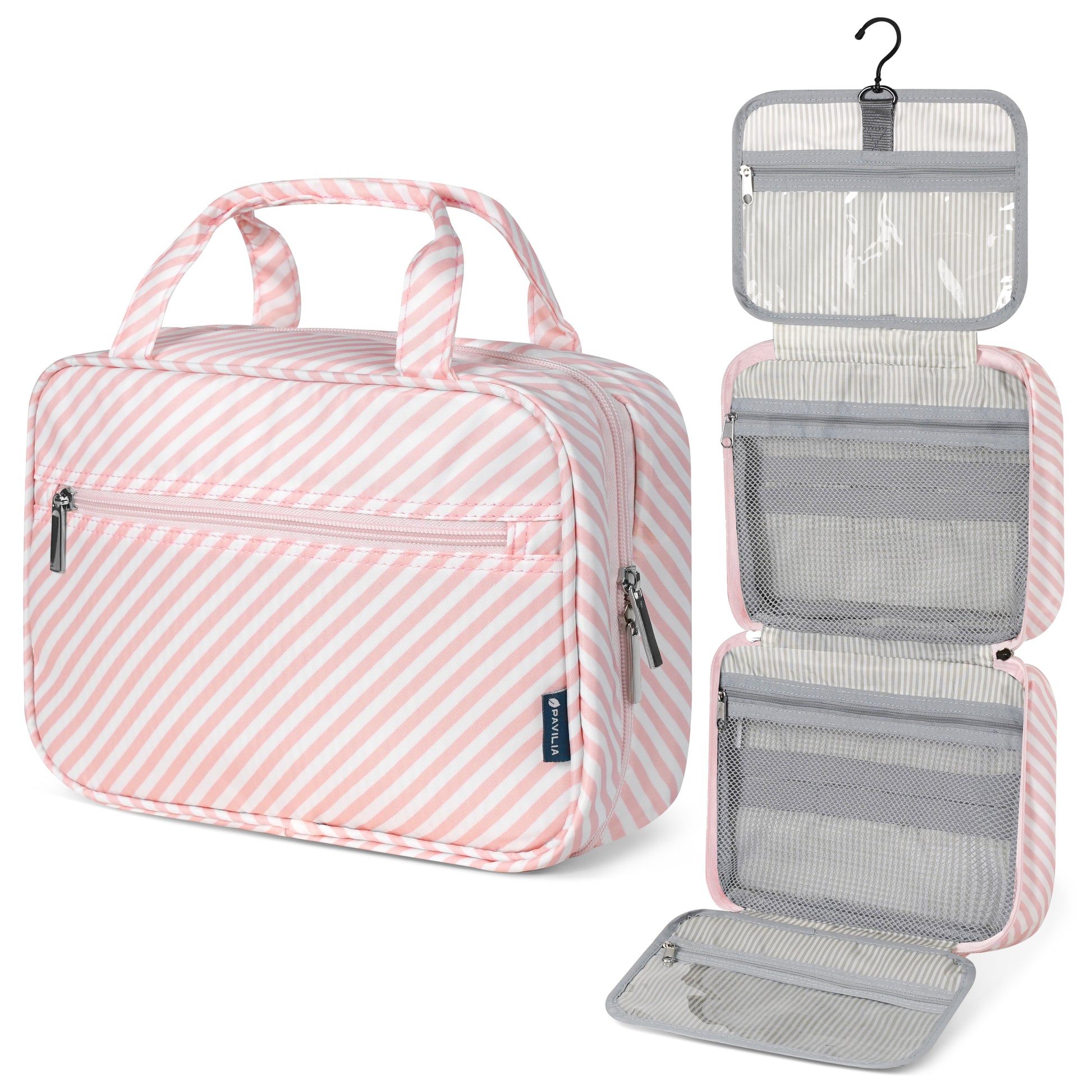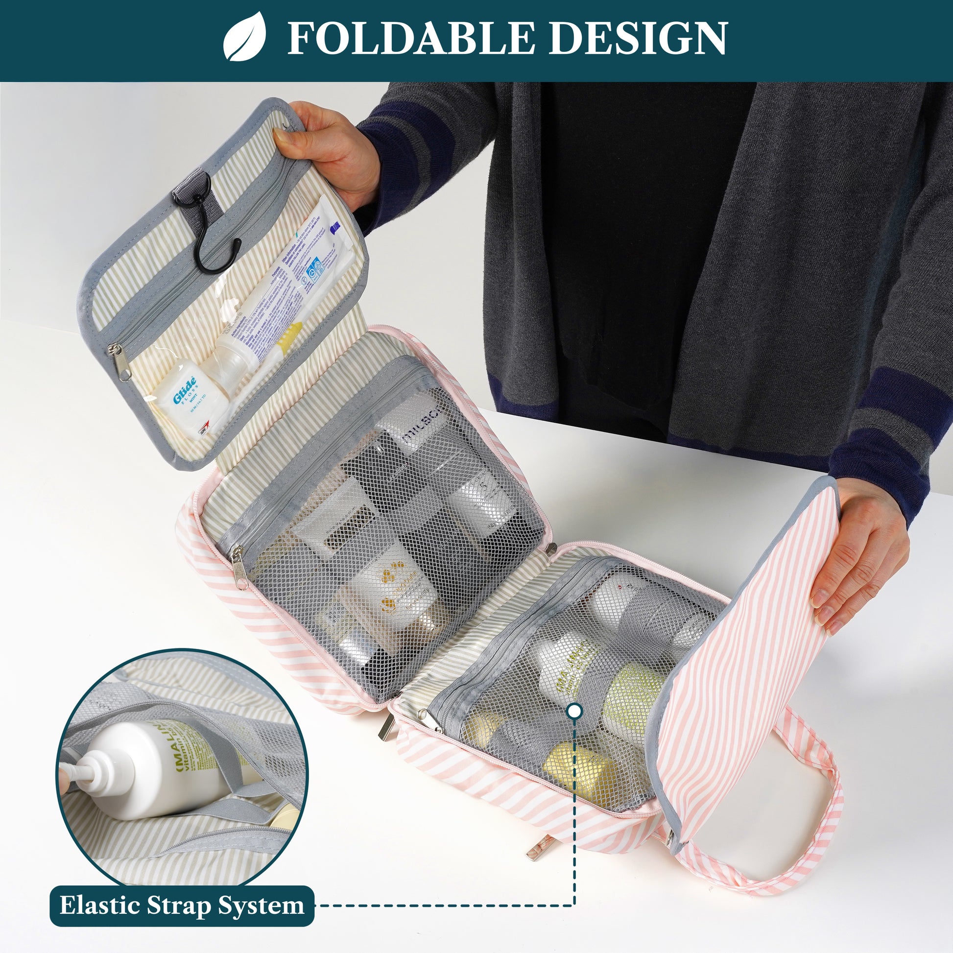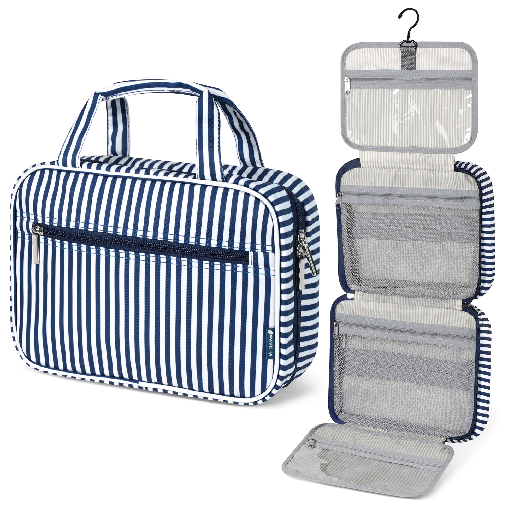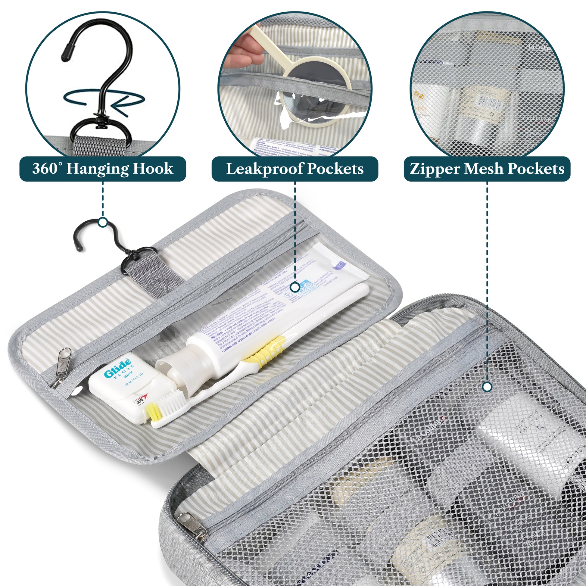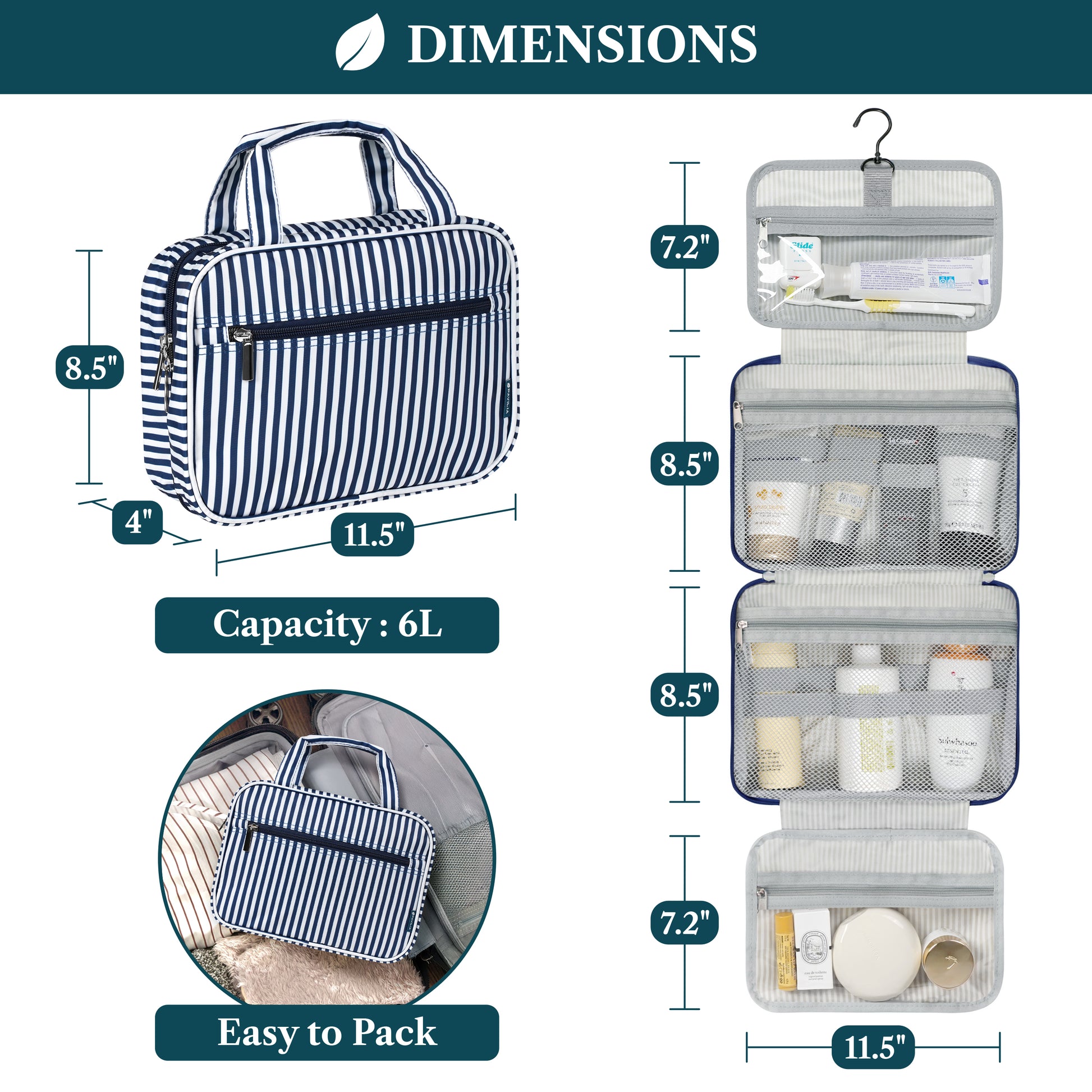 - QUALITY CONSTRUCTION Striped interiors for a modern look, elastic bands for holding tooth brush/make up brush, durable metal zippers we have meticulously designed this TSA approved toiletry bag so you can travel in peace and style, or simply to keep your toiletry organized at home.