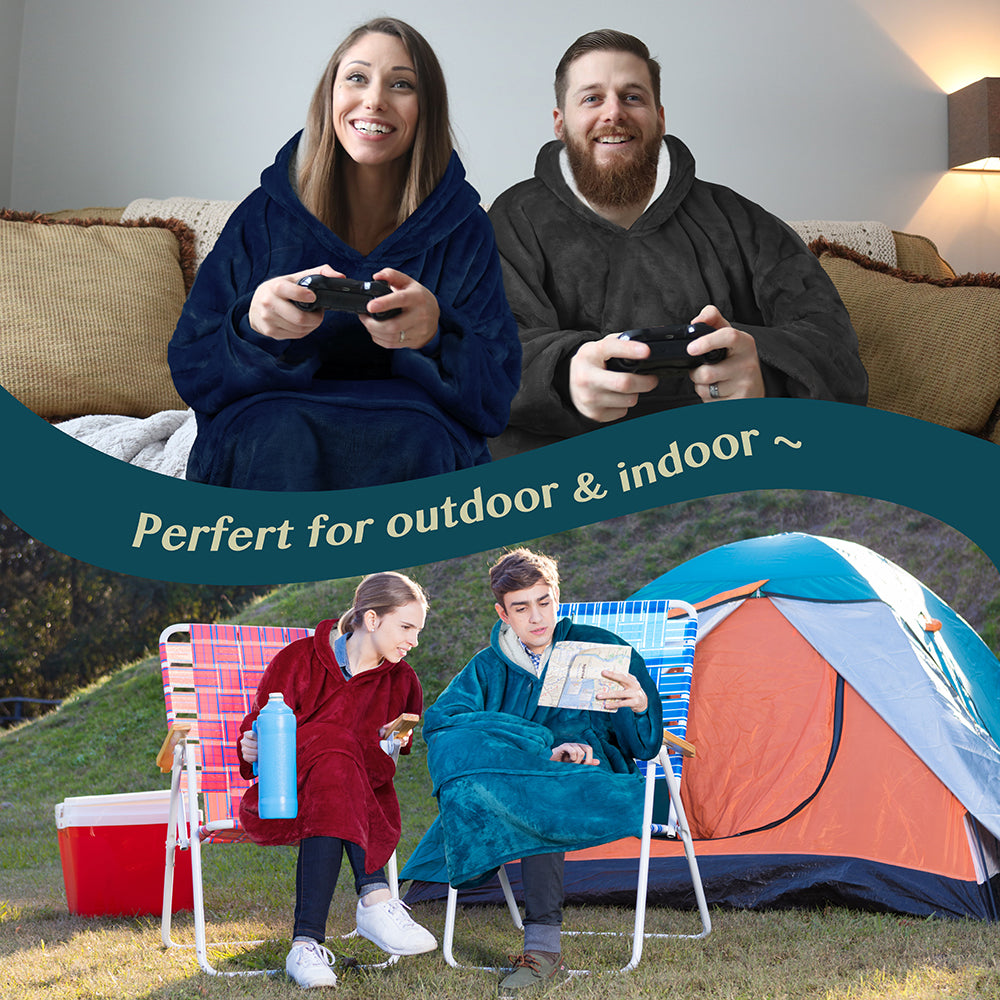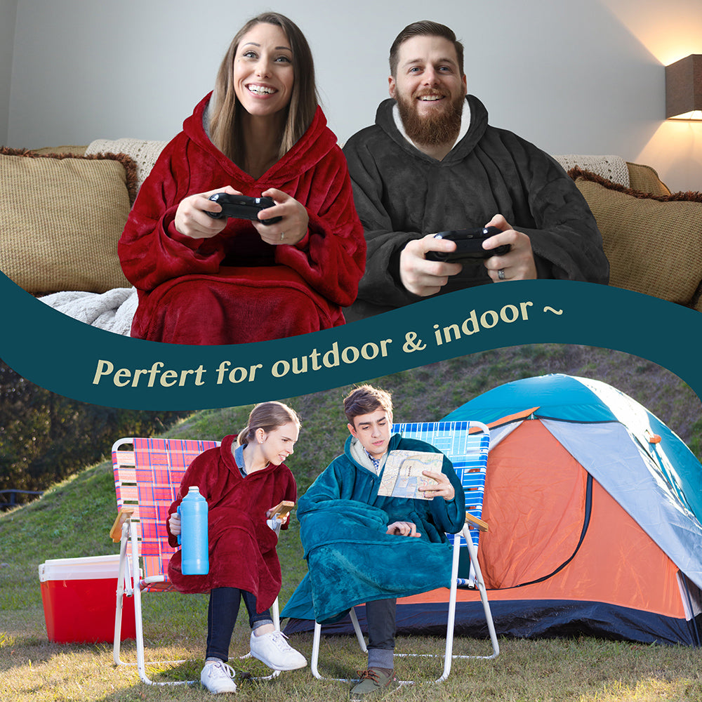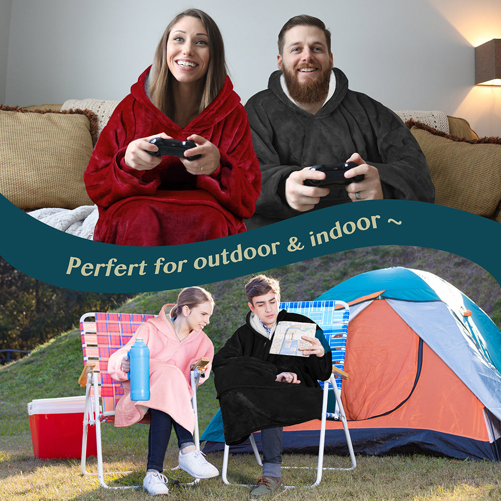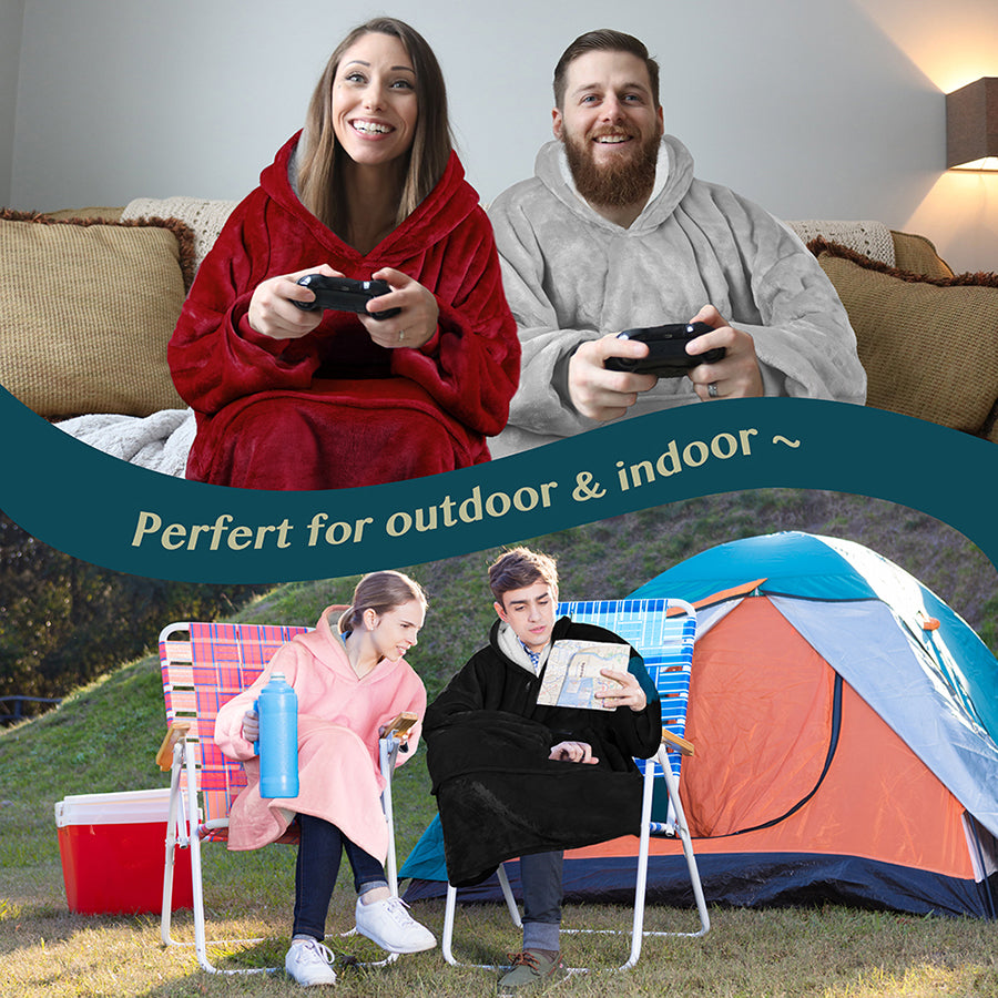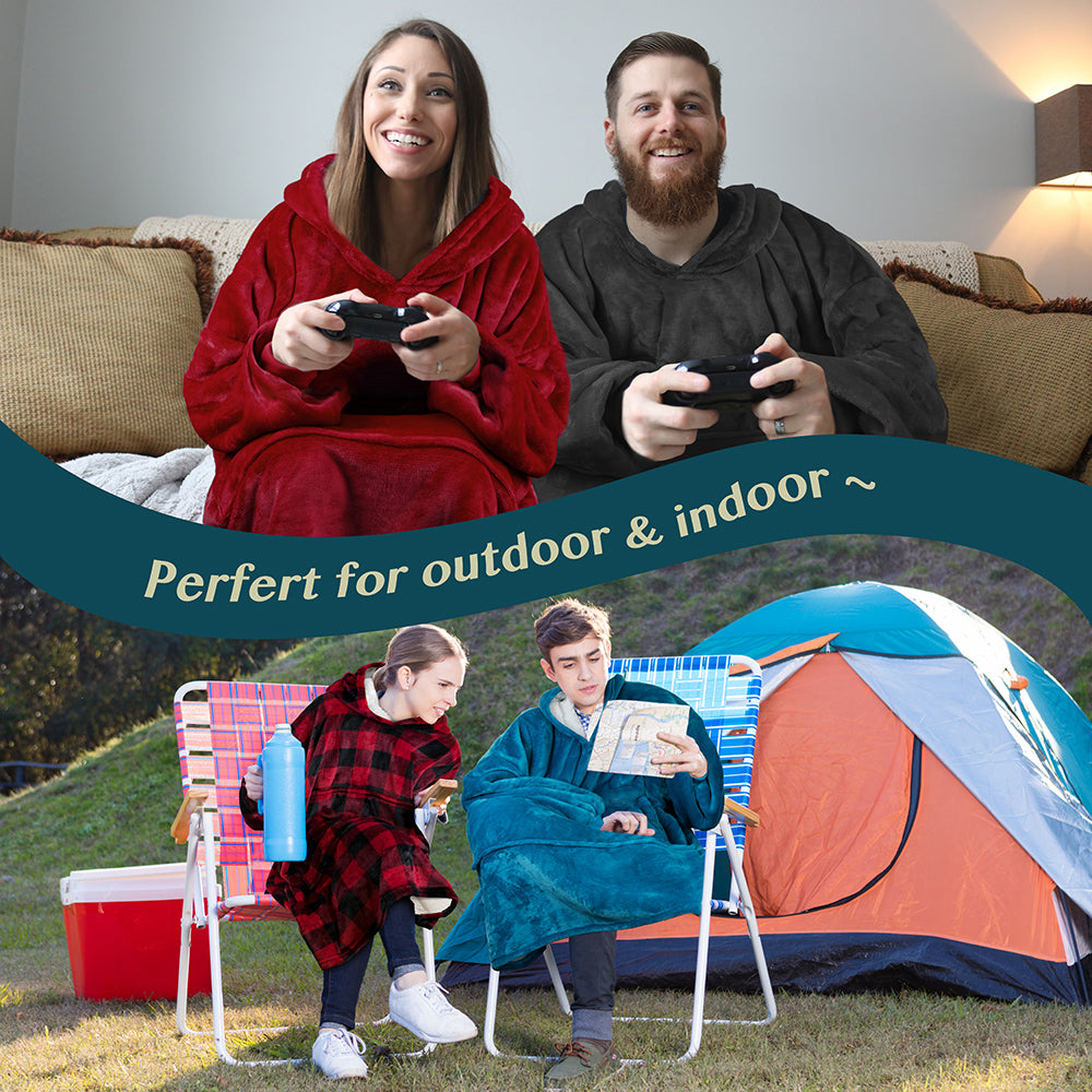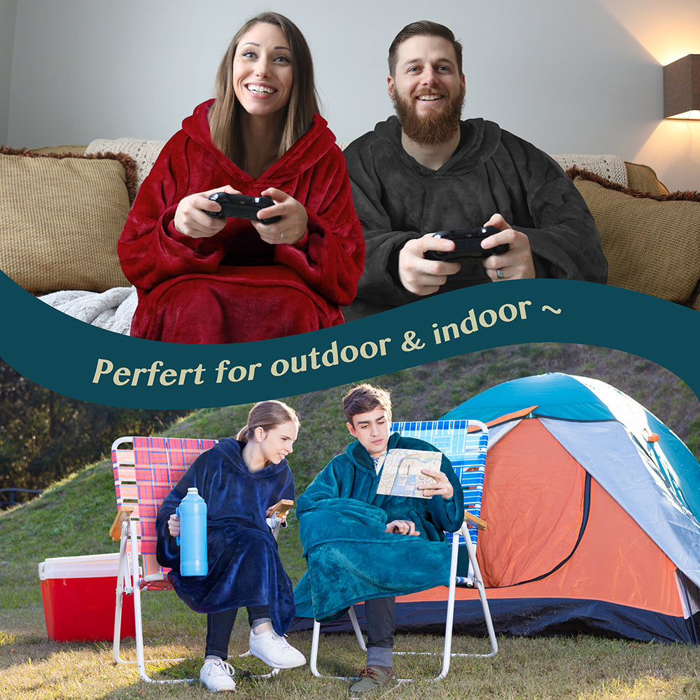 - WEARABLE LOUNGING BLANKET -- Ideal for watching TV, lounging on the sofa couch/bed, reading, studying, playing games, or napping. Perfect for camping and watching live sports. Wearable Blanket Hoodie will not slip down, allowing both hands free to use your laptop or cellphone.