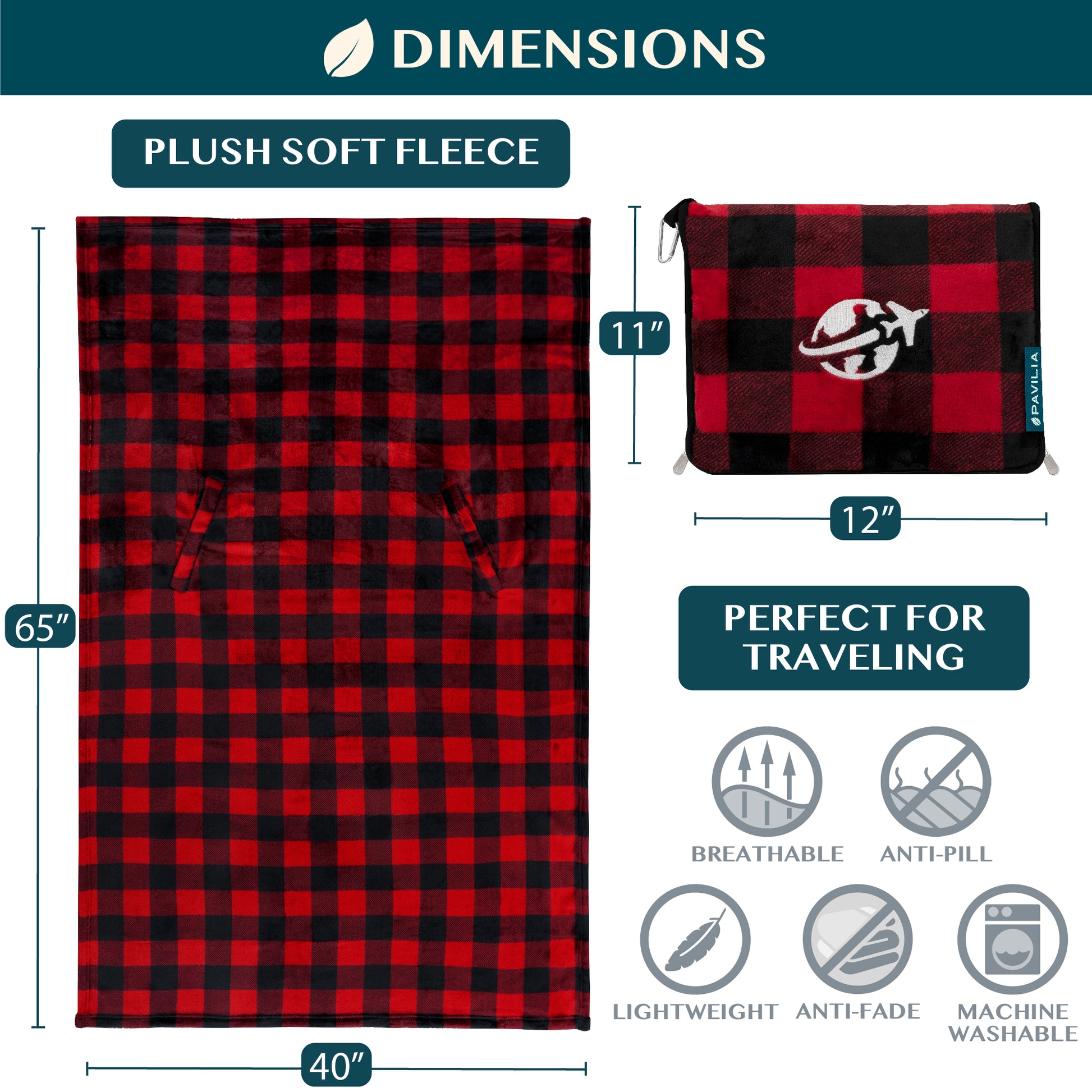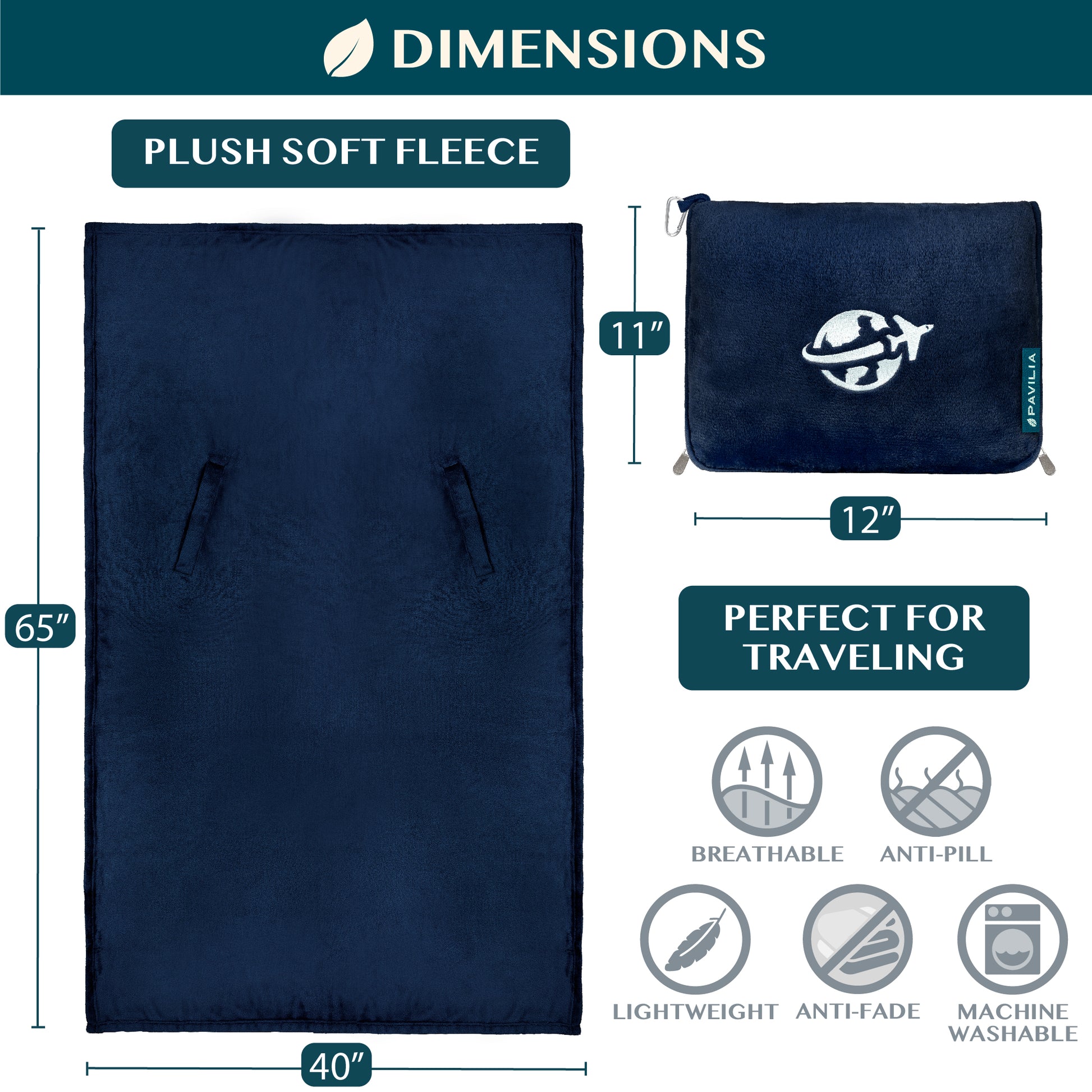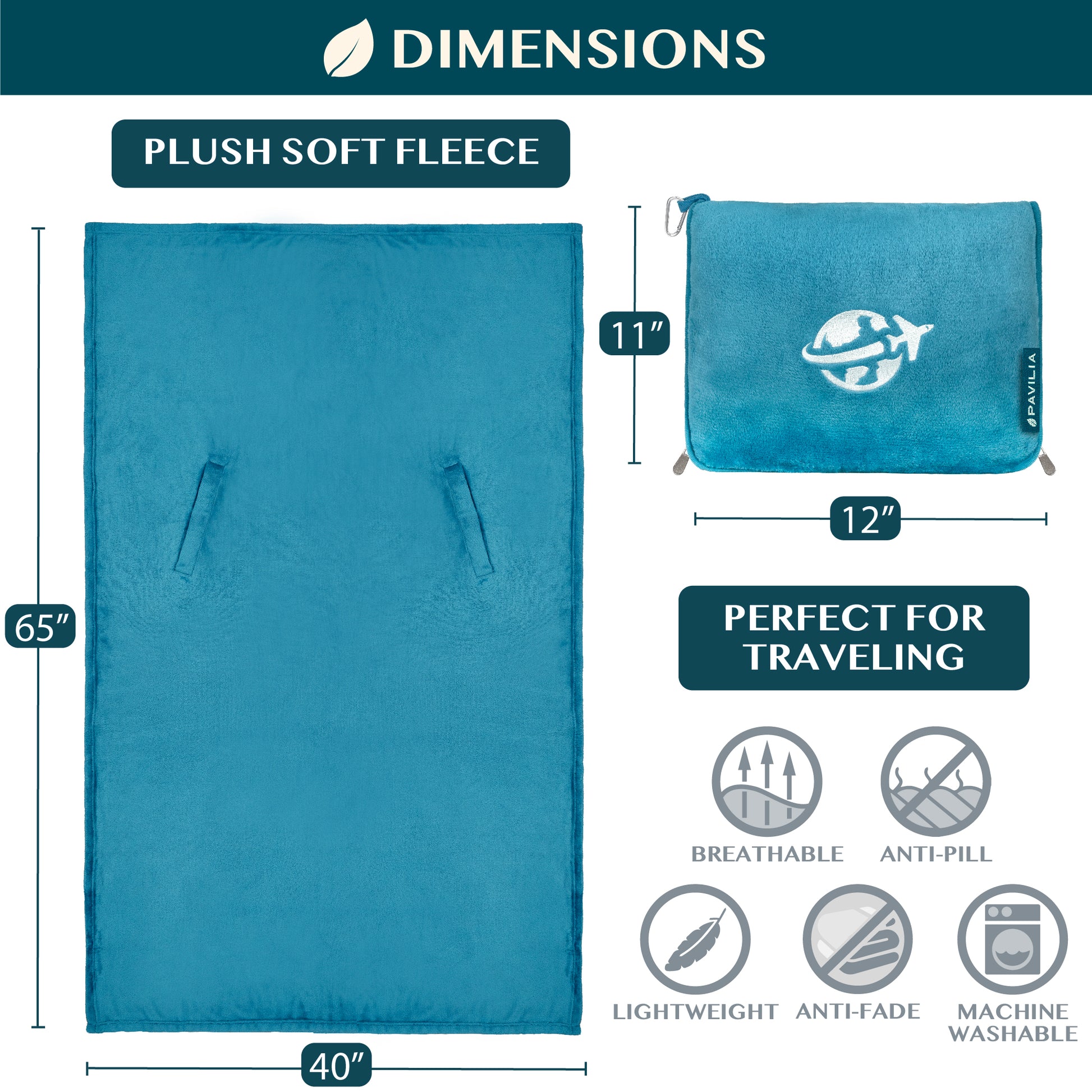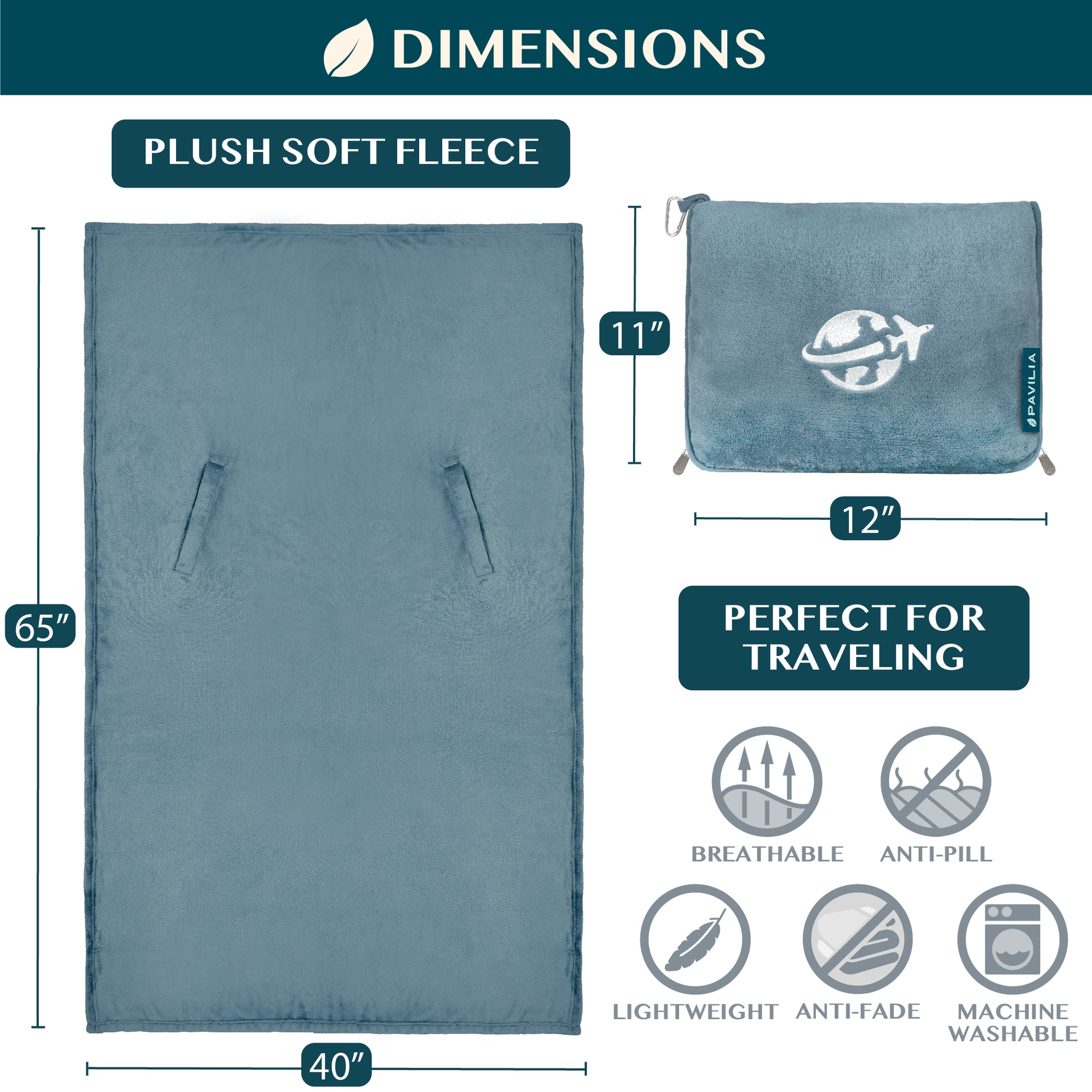 - EASY TO CARE: Machine Washable. Wash separately in cold water; Tumble Dry Low. Our blanket gets softer with each wash! This blanket measures 65 x 40 inches, and 11 x 12 inches when converted into a portable bag pack pillow.