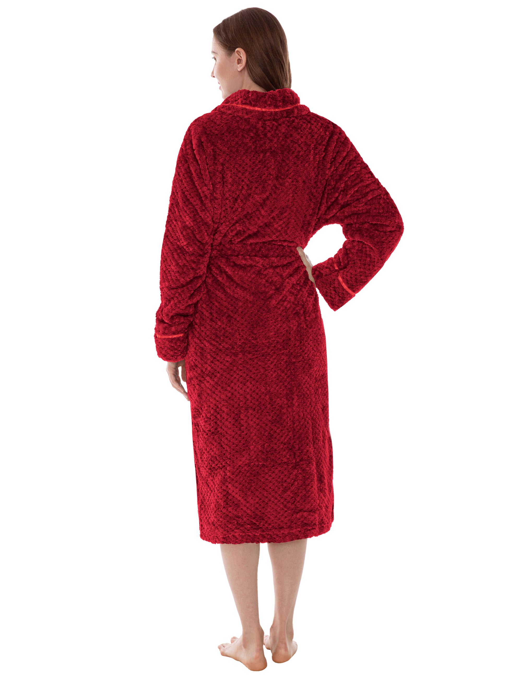 - ELEGANT JACQUARD TEXTURED FLEECE ROBE: Our Premium Women Fleece Long Robe is soft on your skin, lightweight, and keeps you warm. We made the robe of fluffy fuzzy fleece fabric that has added texture, making this an elegant robe thats warm, functional, and great looking.