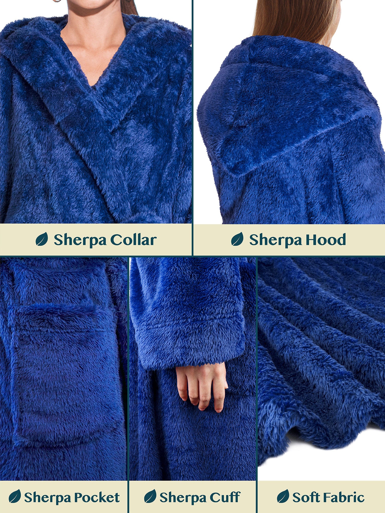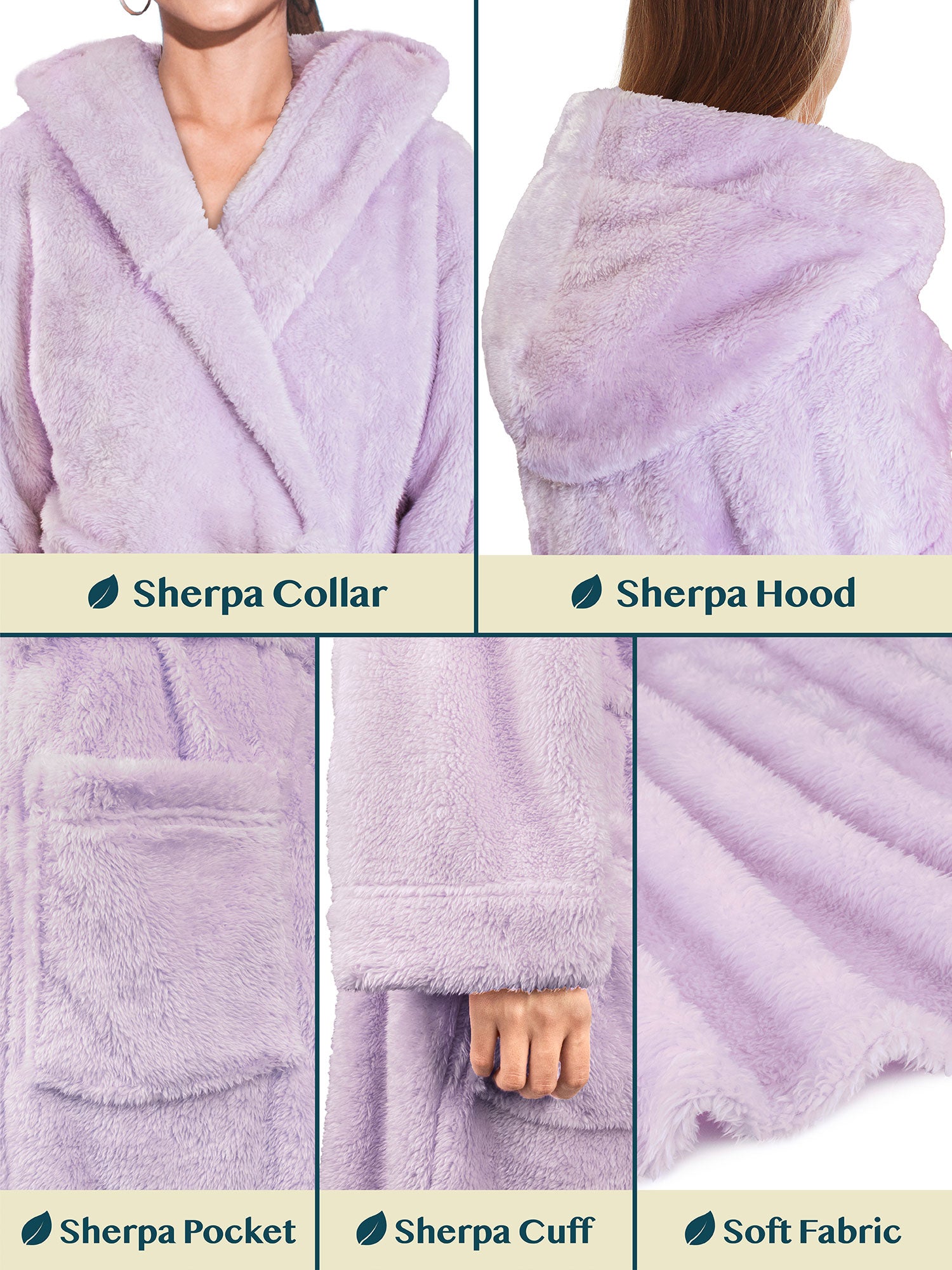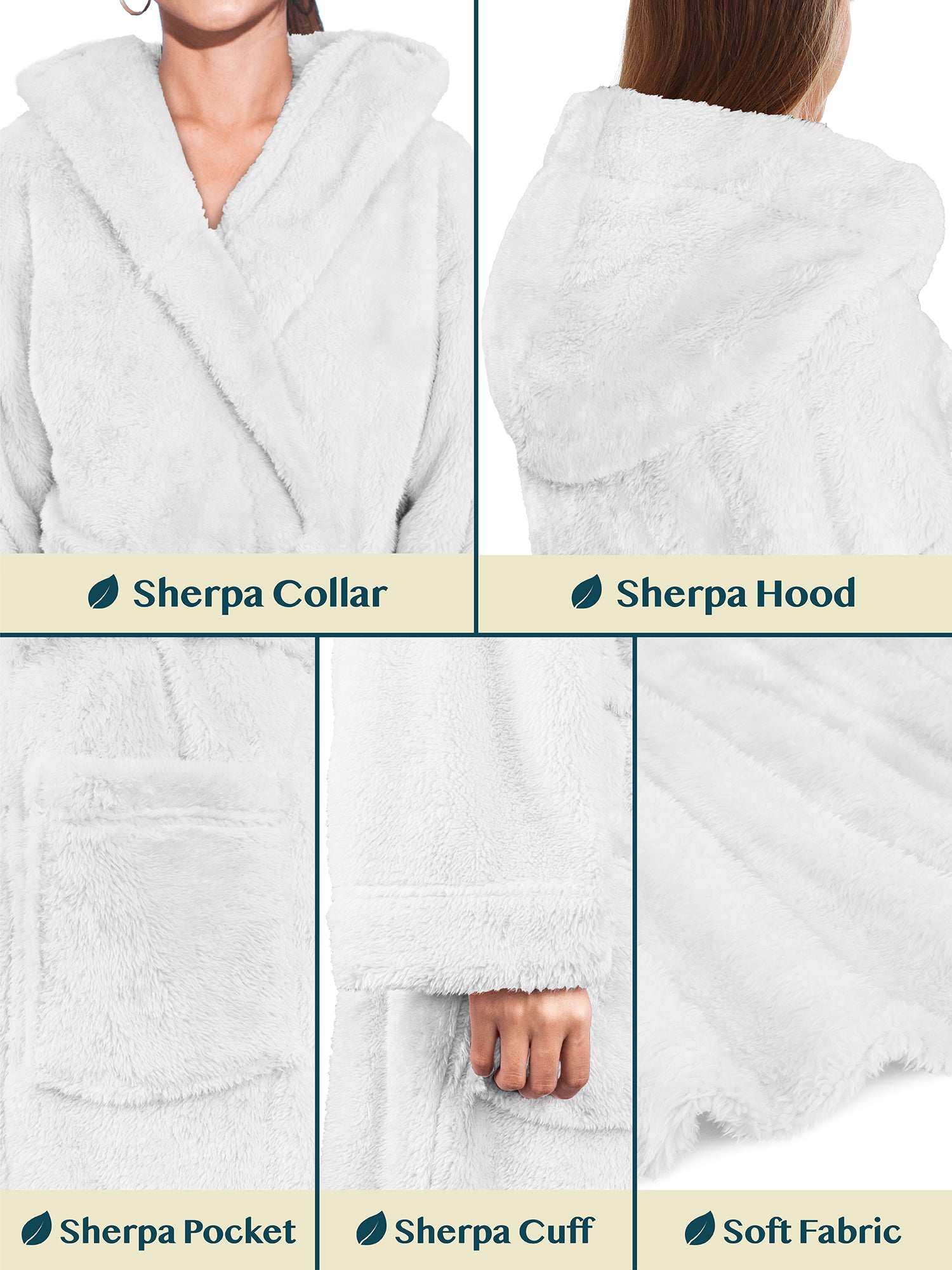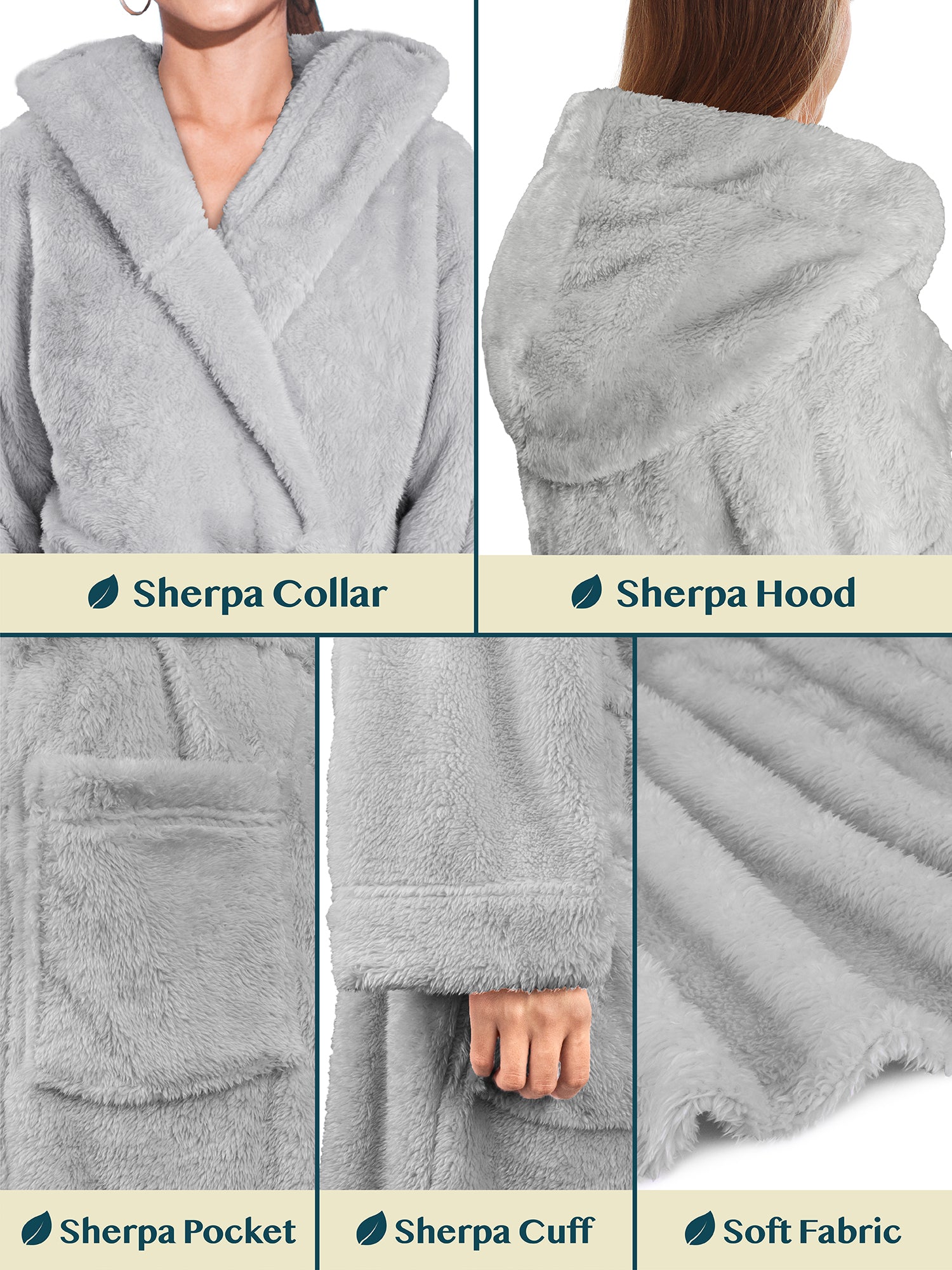 - FLUFFY TEDDY SHERPA FLEECE ROBE Our Premium Women Fleece Long Hooded Robe is soft on your skin, lightweight, and keeps you warm. We made the robe of fluffy teddy sherpa fabric to make it cozy with an elegant touch!