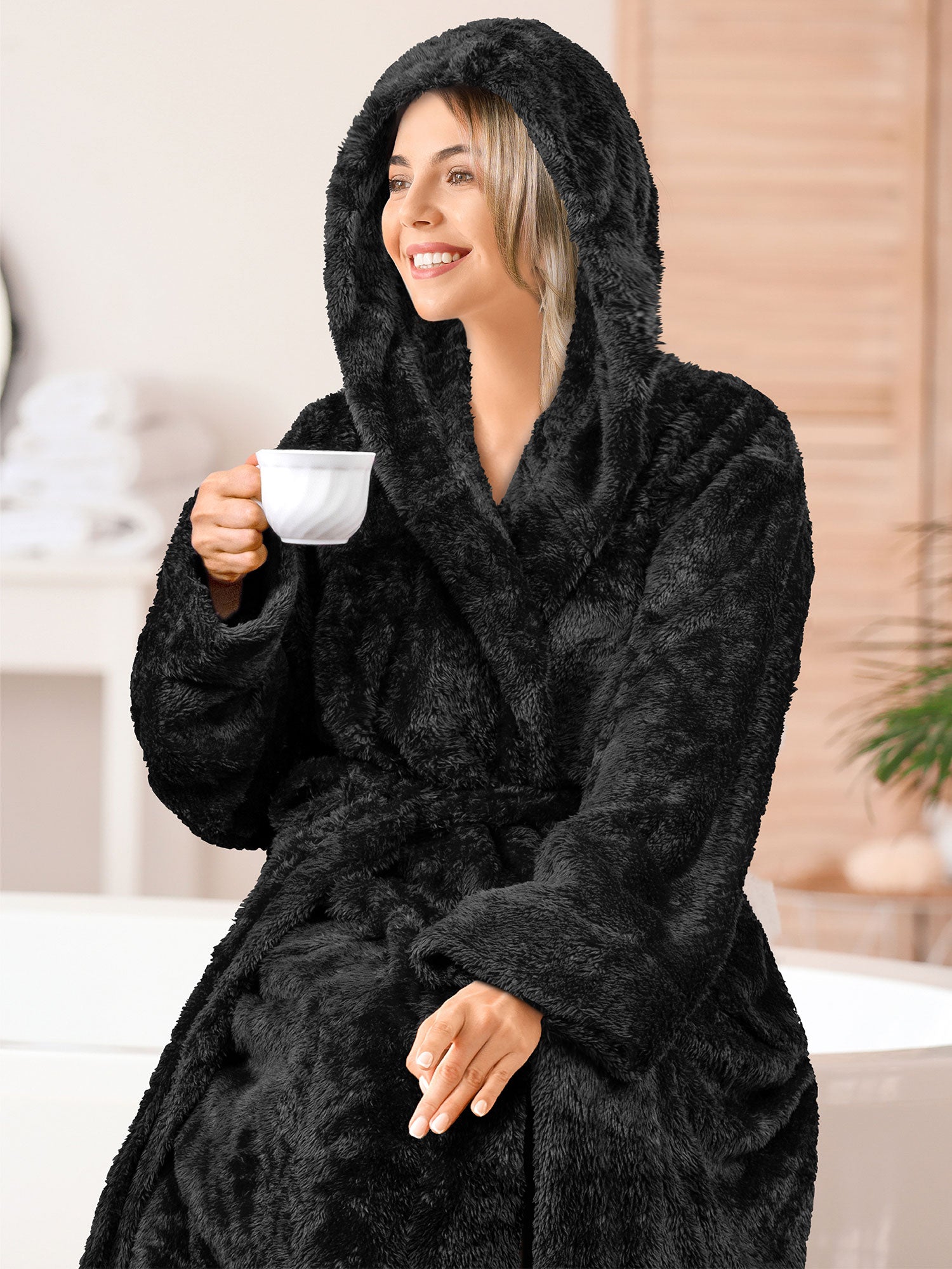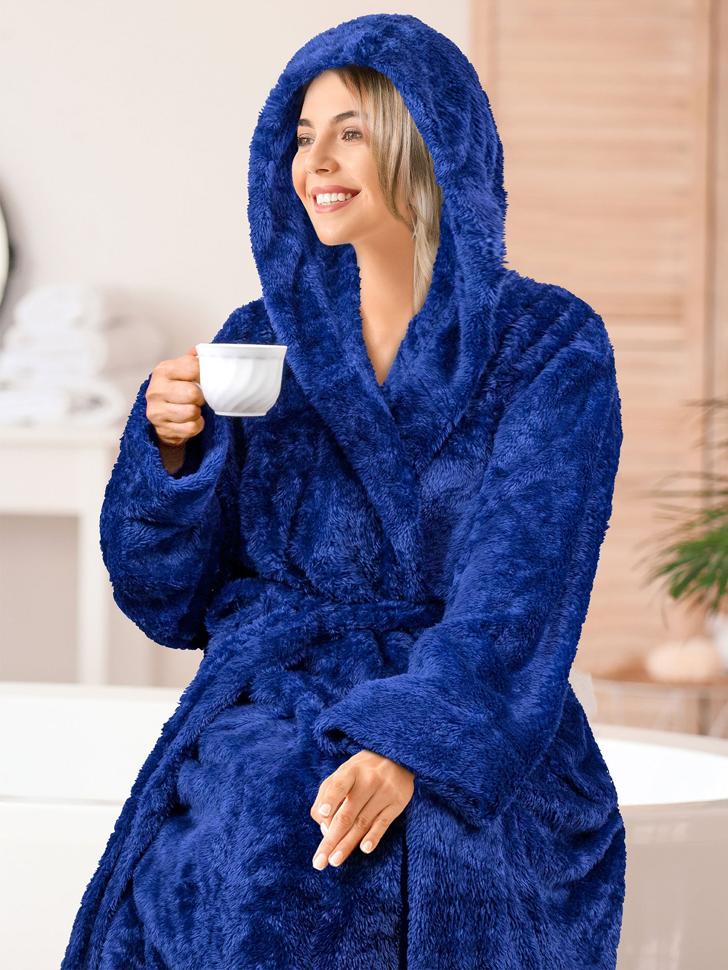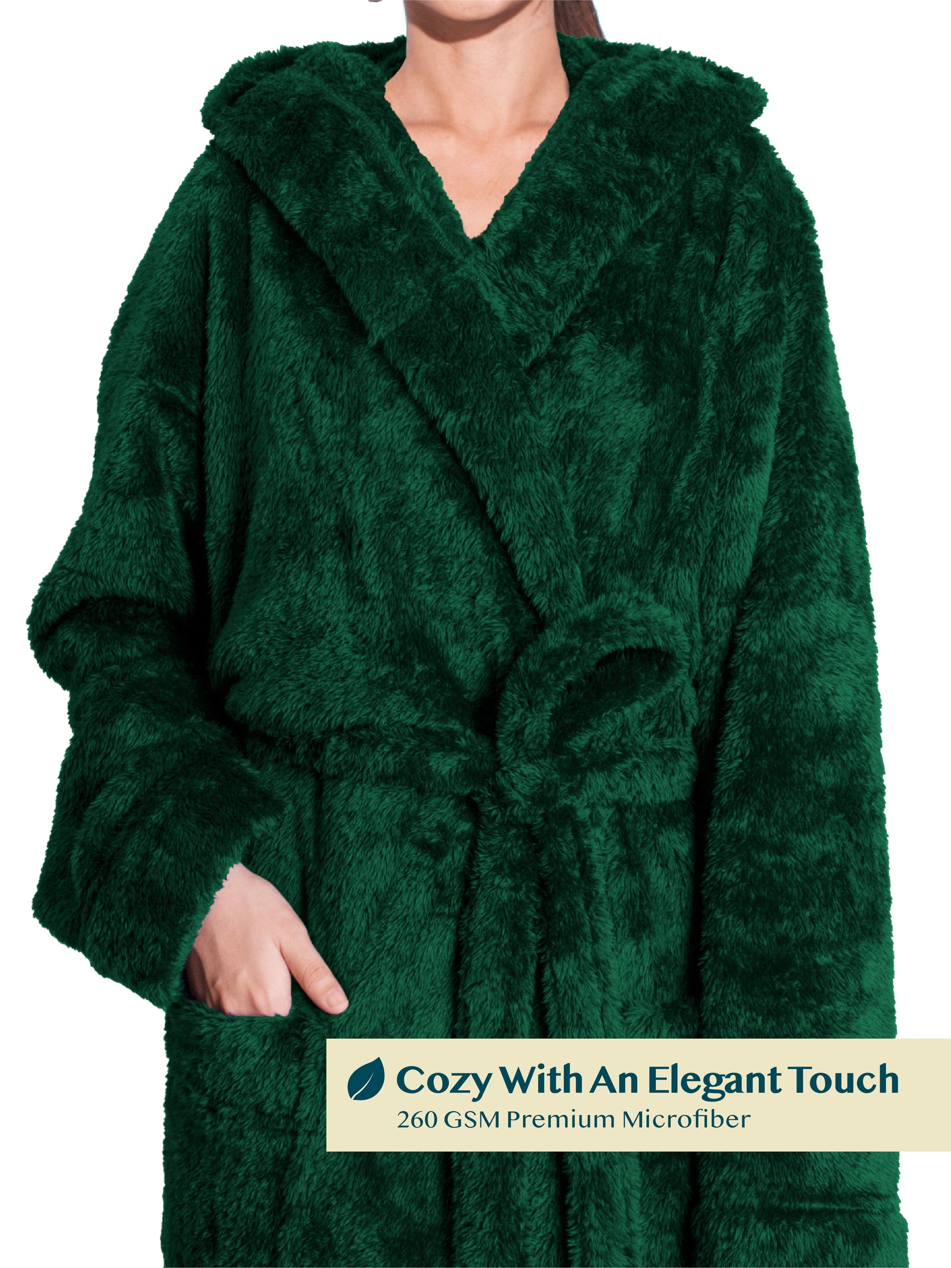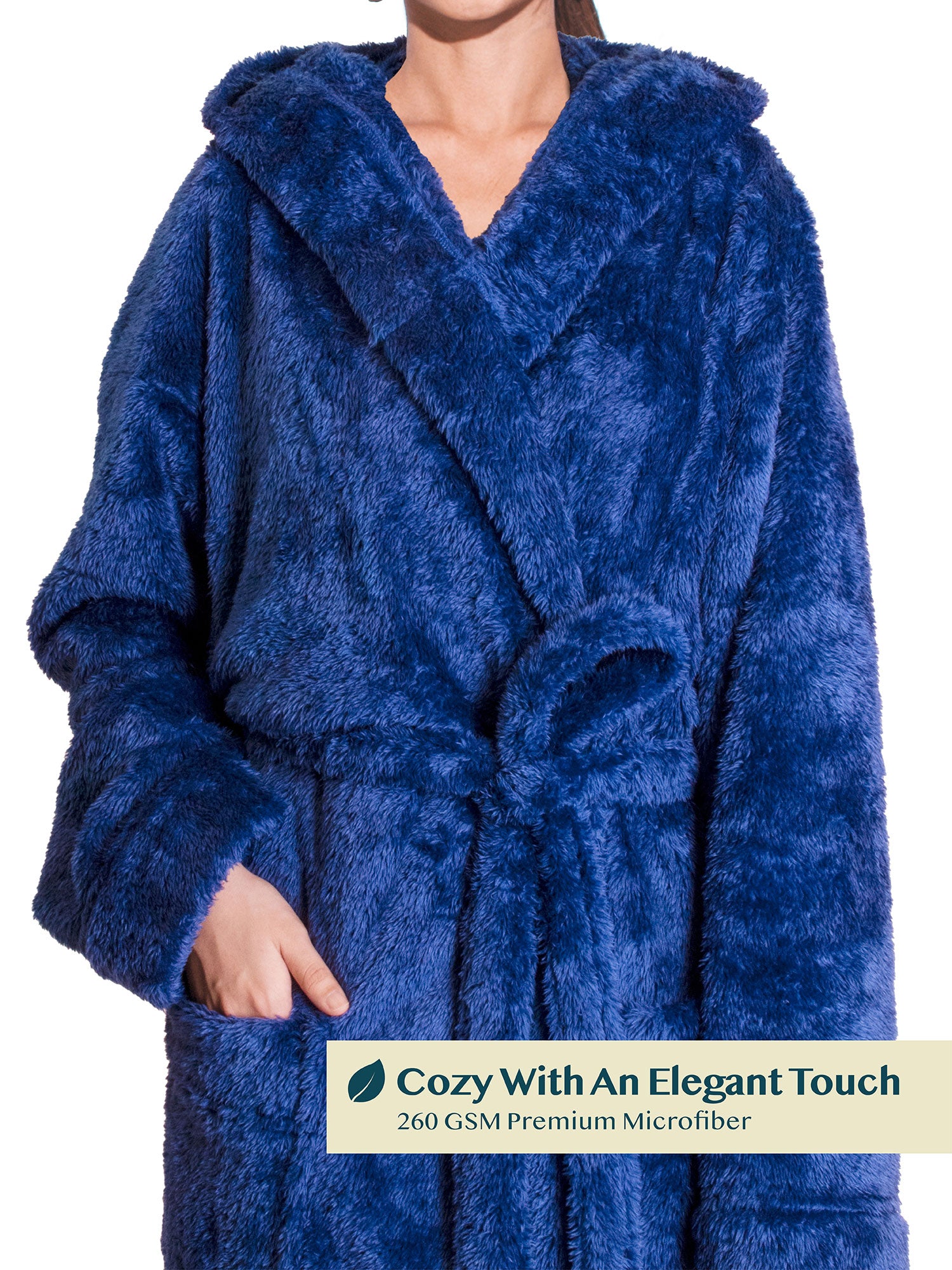 - FLUFFY TEDDY SHERPA FLEECE ROBE Our Premium Women Fleece Long Hooded Robe is soft on your skin, lightweight, and keeps you warm. We made the robe of fluffy teddy sherpa fabric to make it cozy with an elegant touch!