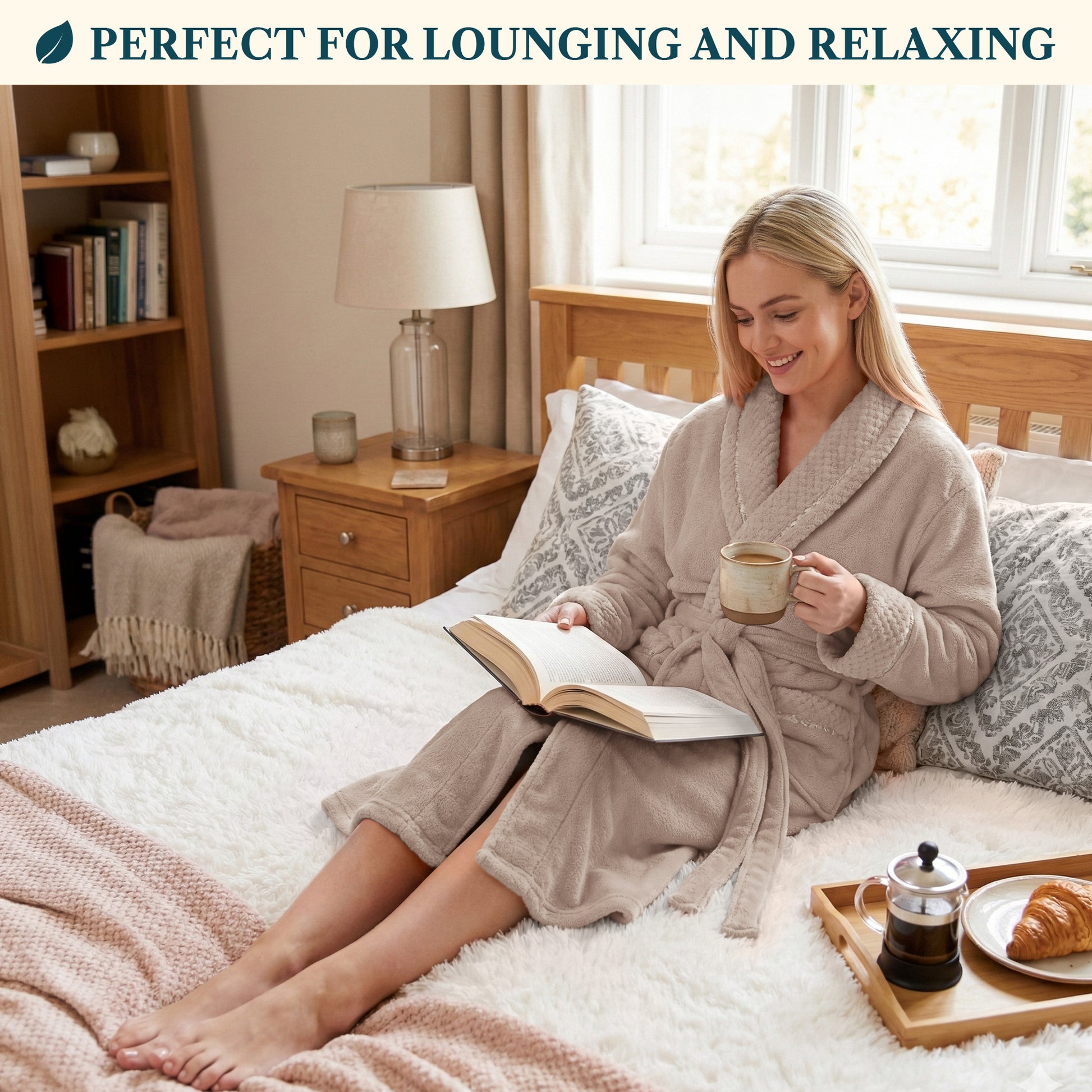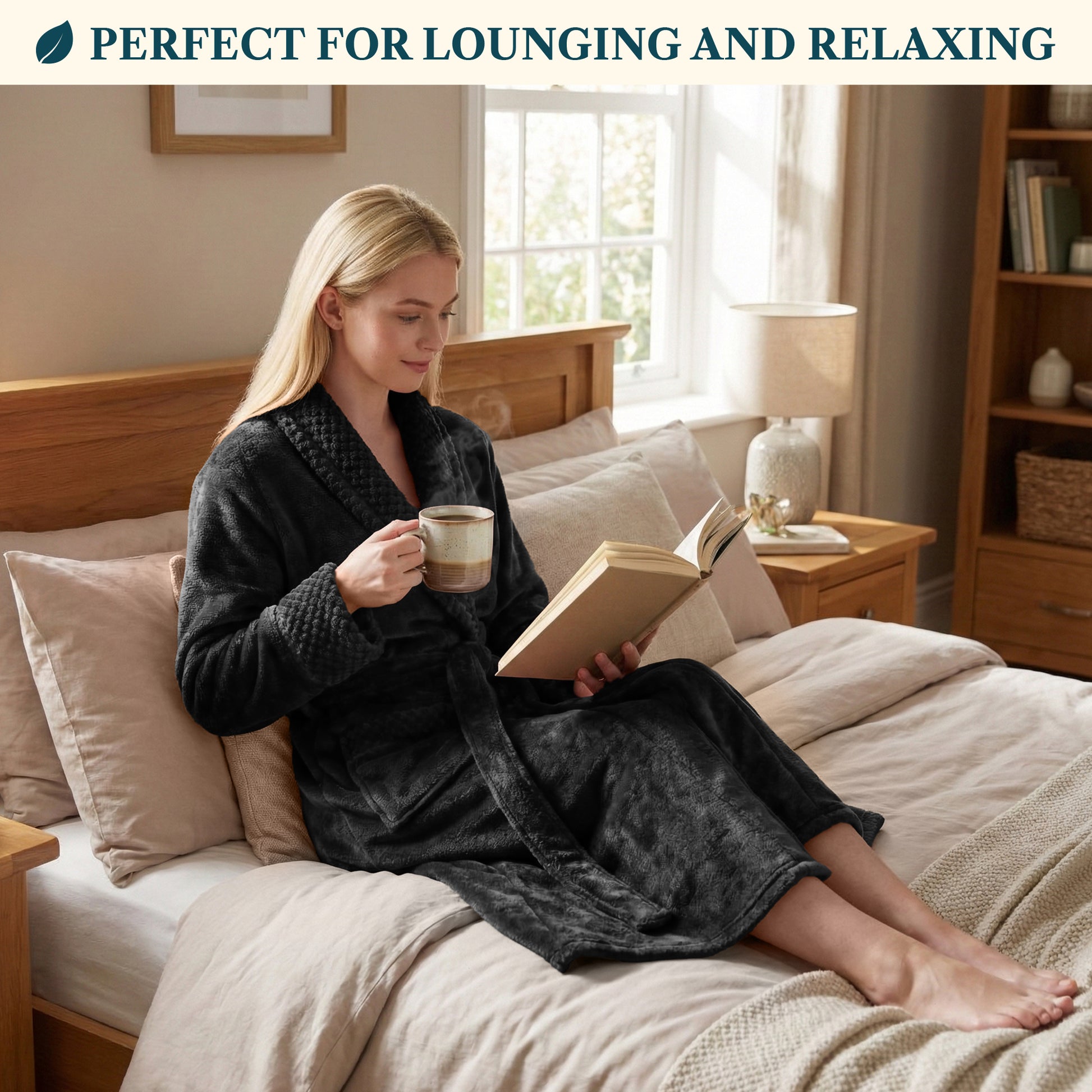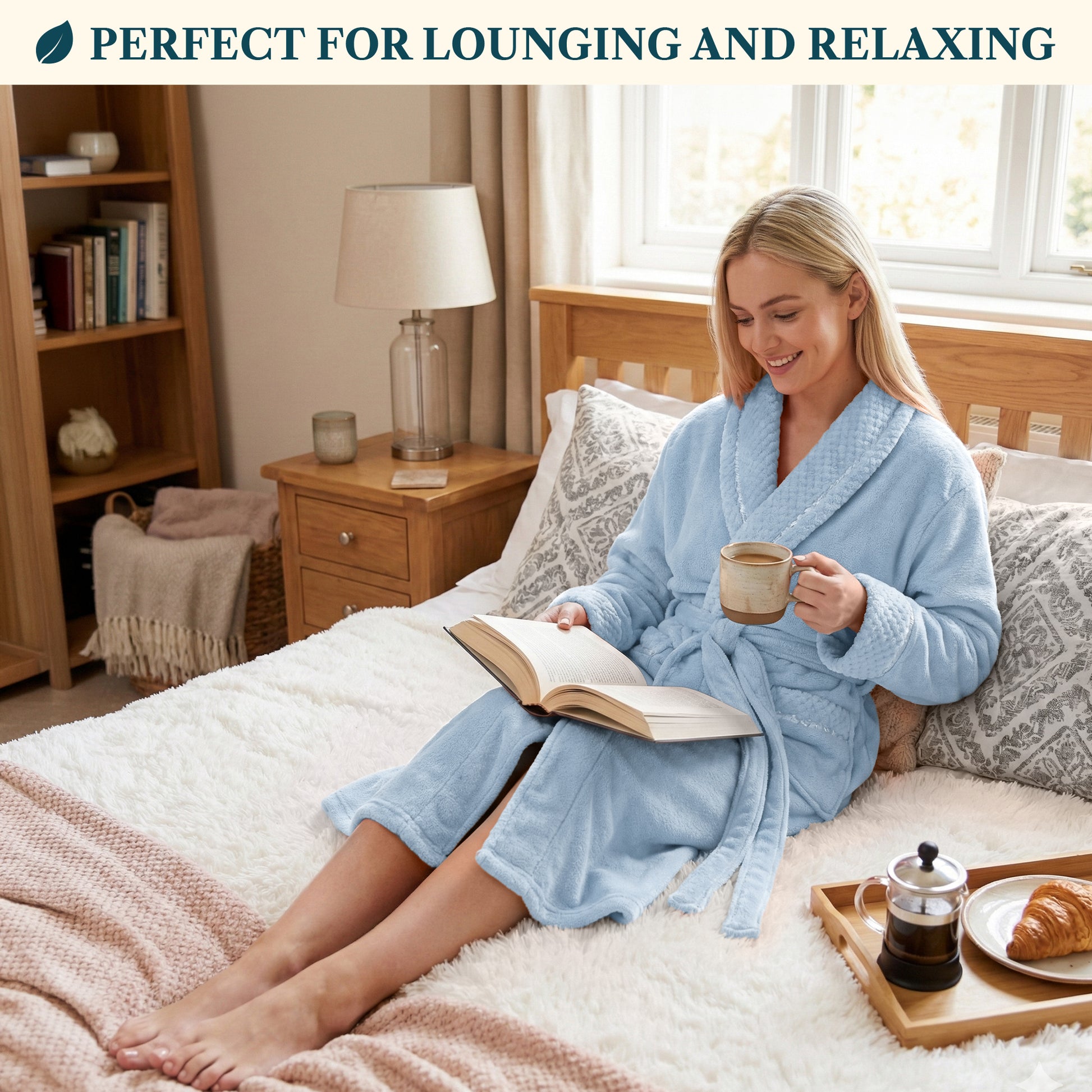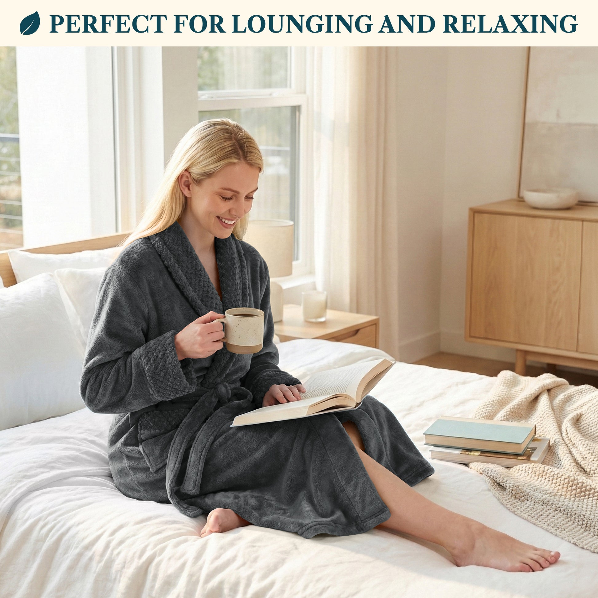 Our Premium Women Fleece Robe is soft on your skin, lightweight, cozy, and keeps you warm. We accented the robe with satin trim to give it an extra luxurious feel and added the waffle texture cuff, neck, and pockets to take this style to a new level!